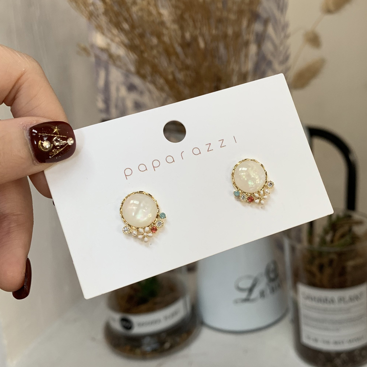 韓國東大門氣質小巧精致時尚花朵珍珠簡約百搭小耳釘銀針耳環女1入