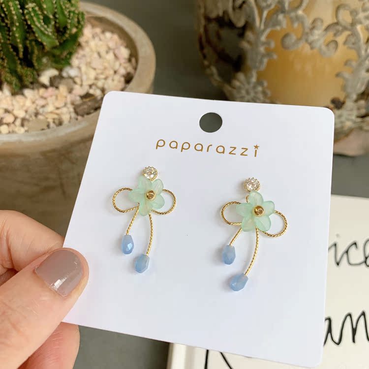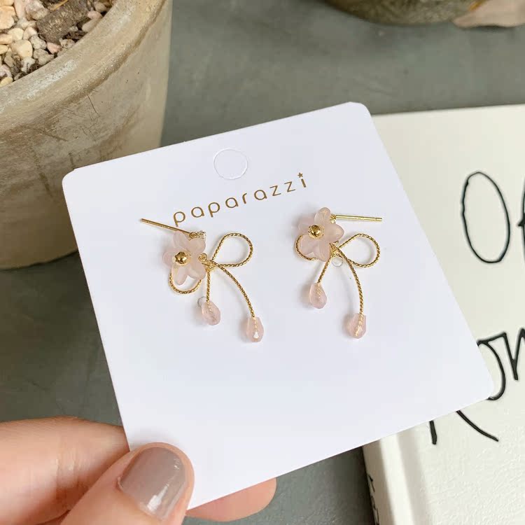 韓國甜美氣質蝴蝶結耳釘少女清新花朵S925銀針百搭耳環夏日耳飾品1入