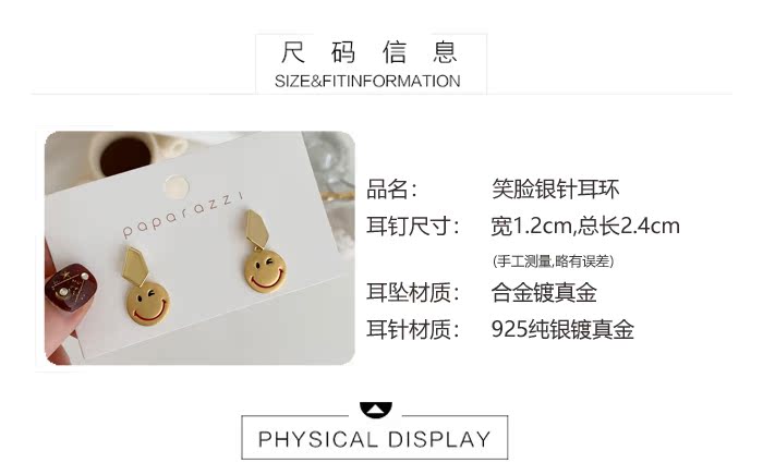 韓國東大門甜美少女時尚可愛小幸運笑臉耳墜耳環925銀針耳釘氣質1入