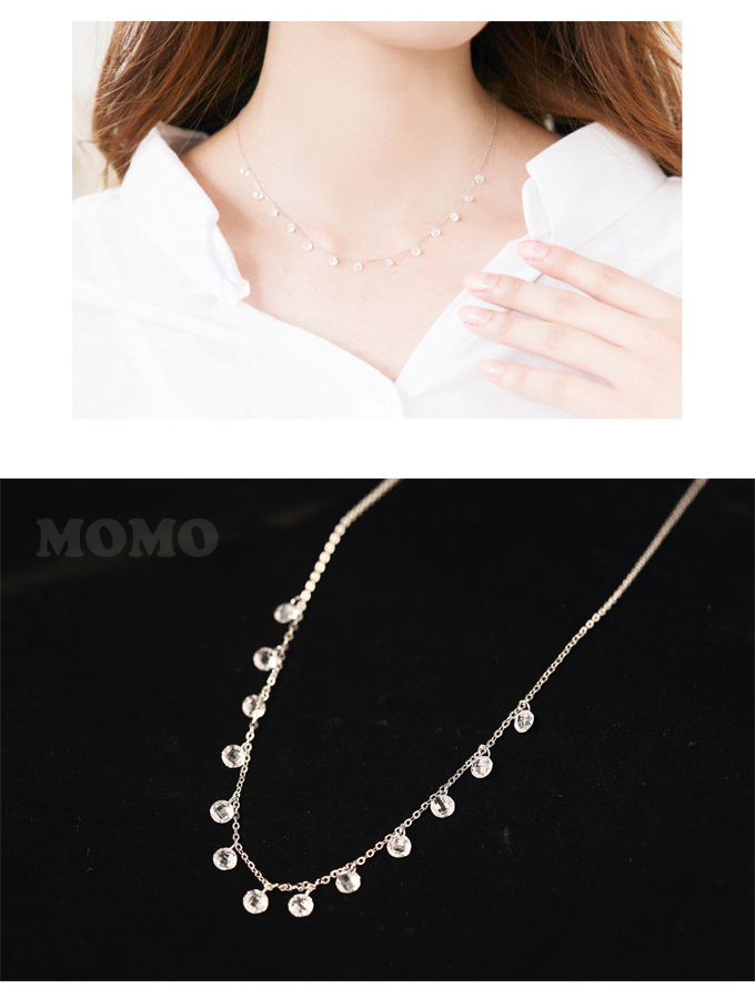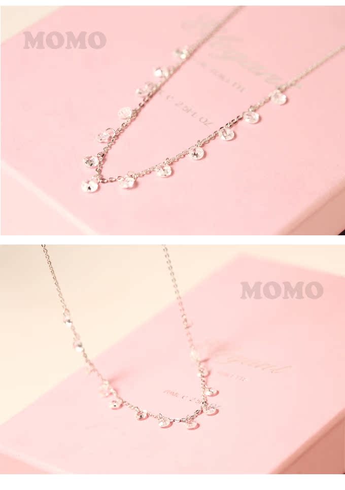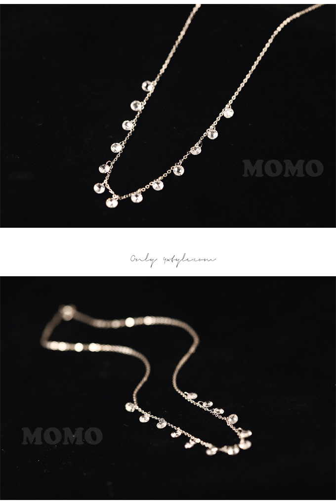 韓版s925通體純銀項鏈鎖骨鏈多顆水晶墜氣質百搭女短款 1入