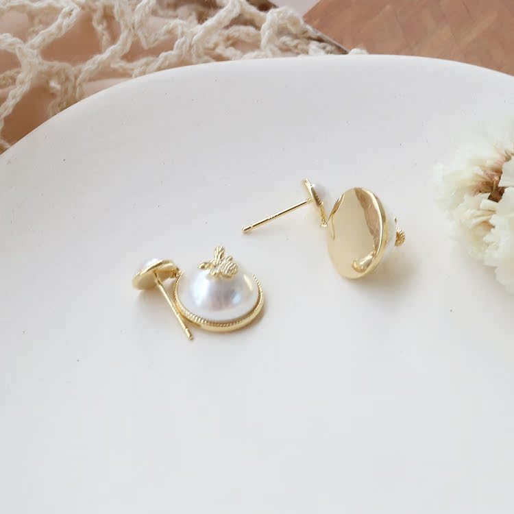 韓國 甜美少女心日常百搭珍珠蜜蜂金屬925銀針耳環女簡約氣質耳釘1入