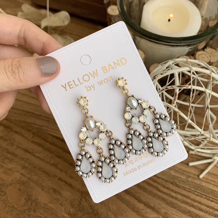 韓國東大門設計師款奢華水鉆925銀針耳釘仙氣復古氣質水晶耳環1入