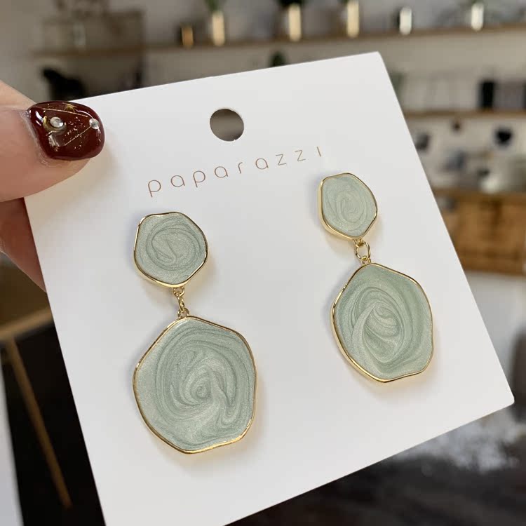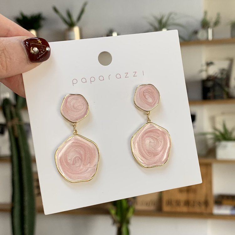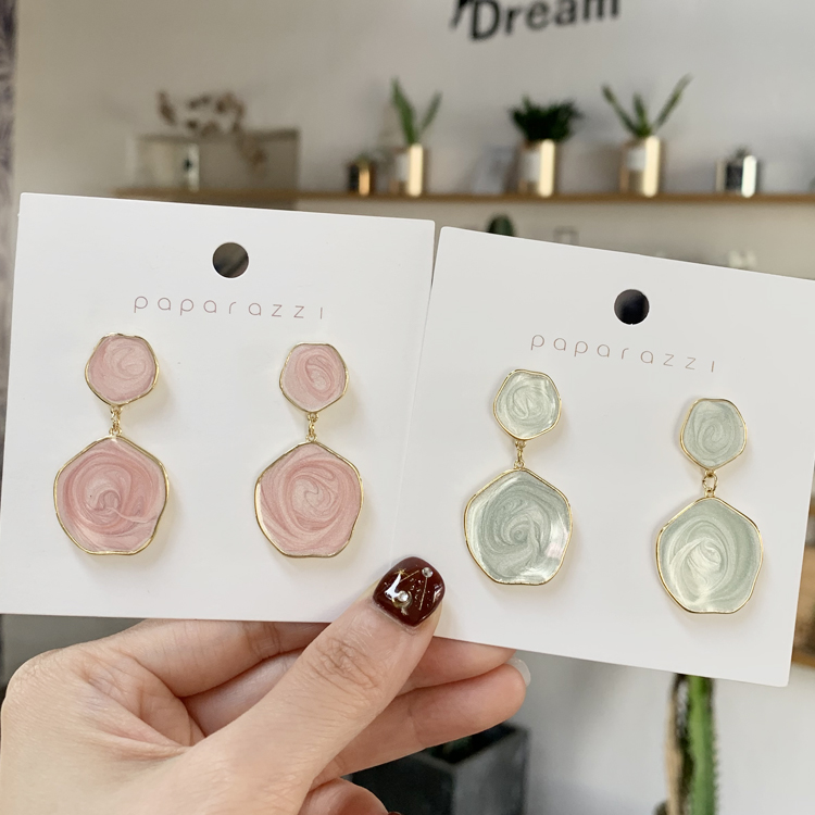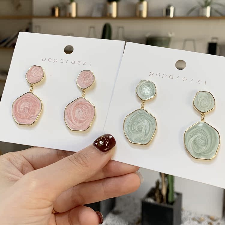 韓國東大門新品時尚閃粉彩色幾何滴釉925銀針耳釘女耳環氣質簡約1入