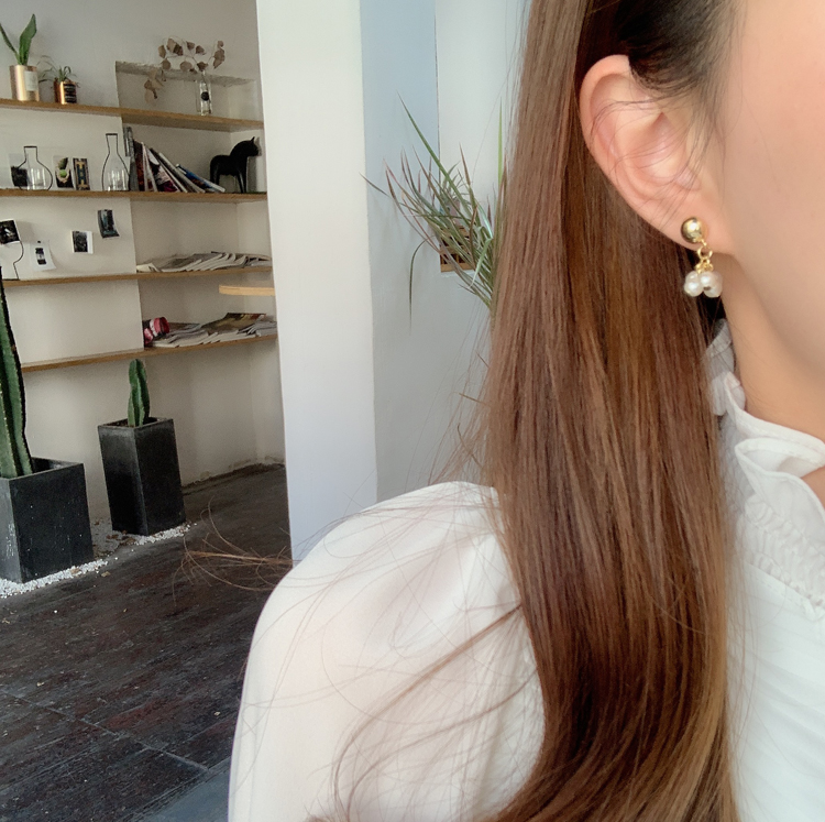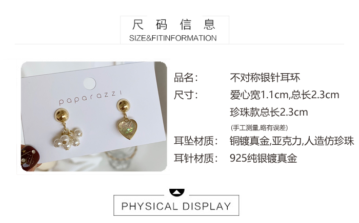 韓國東大門氣質小清新甜美時尚珍珠別致愛心耳環銀針耳釘女不對稱1入