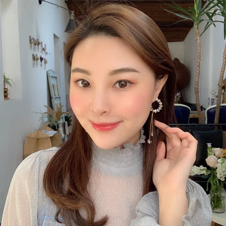 韓國東大門優雅氣質網紅時尚水晶925銀針耳釘流蘇長款顯瘦耳環女1入