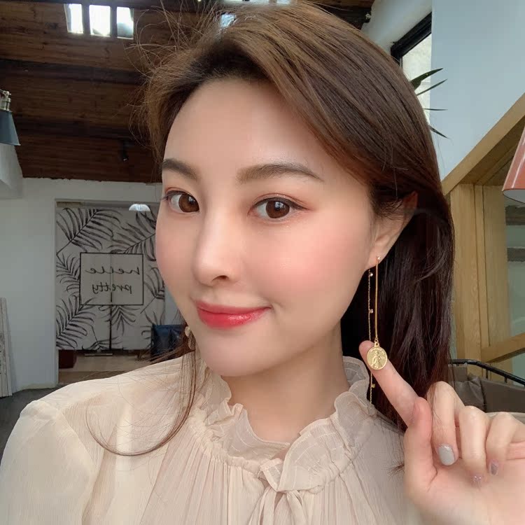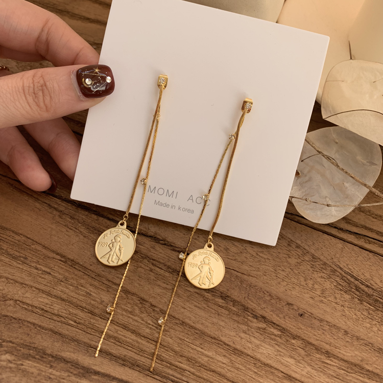 韓國東大門設計師騎士巴洛克復古金屬耳環925銀針長款前后耳釘1入