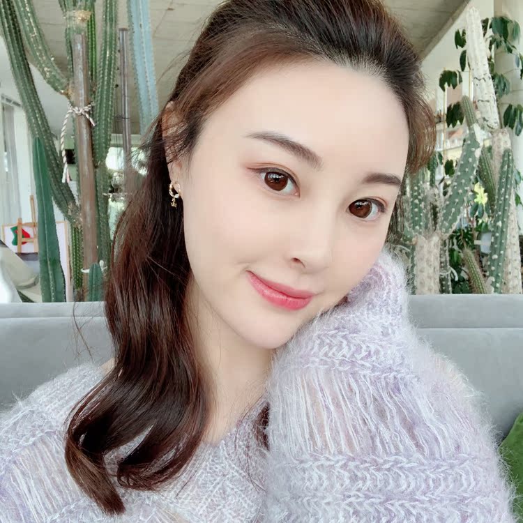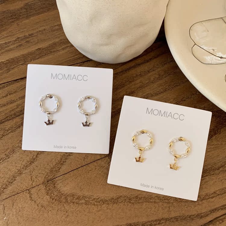 韓國 925銀針耳釘甜美百搭鋯石鏤空圓形皇冠吊墜耳環女氣質簡約1入