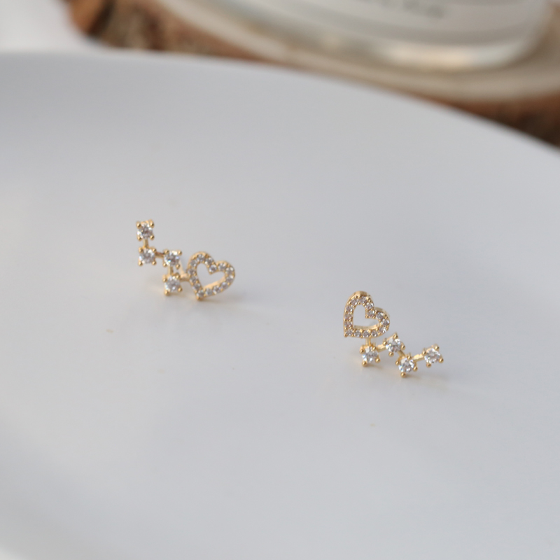 韓國甜美可愛少女時尚愛心上帶銀針耳釘氣質簡約百搭精致小耳環1入
