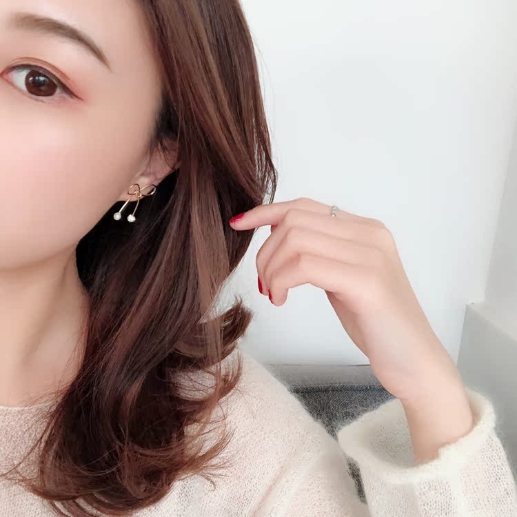 韓國甜美少女大蝴蝶結925銀針耳釘小鉆球珍珠點綴優雅感耳環氣質1入