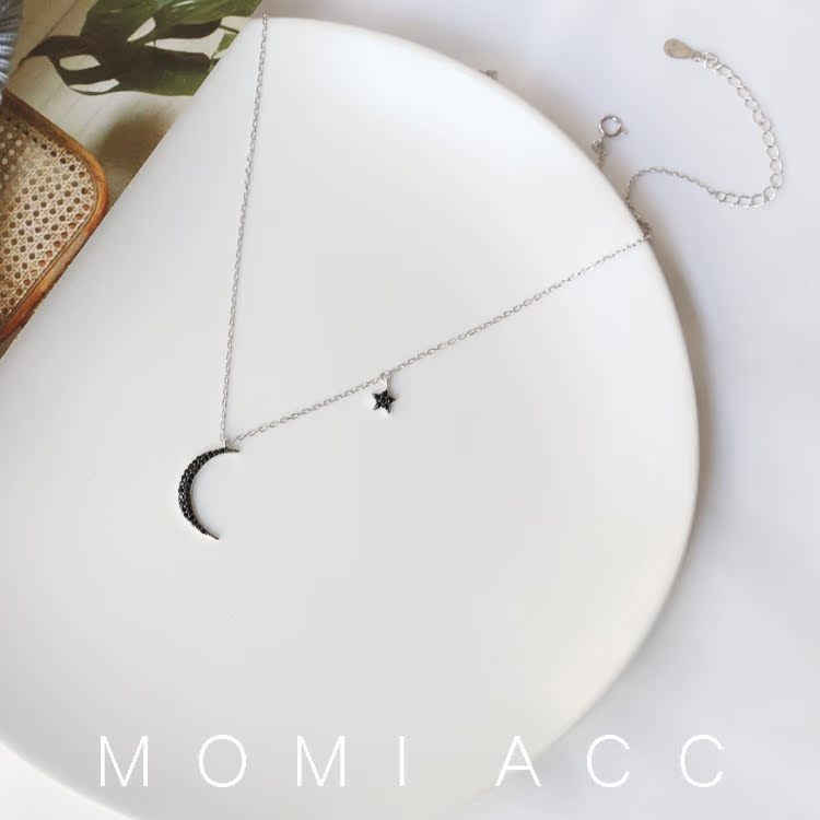 韓國東大門星星月亮S925純銀鎖骨鏈項鏈網紅小清新短女氣質1入