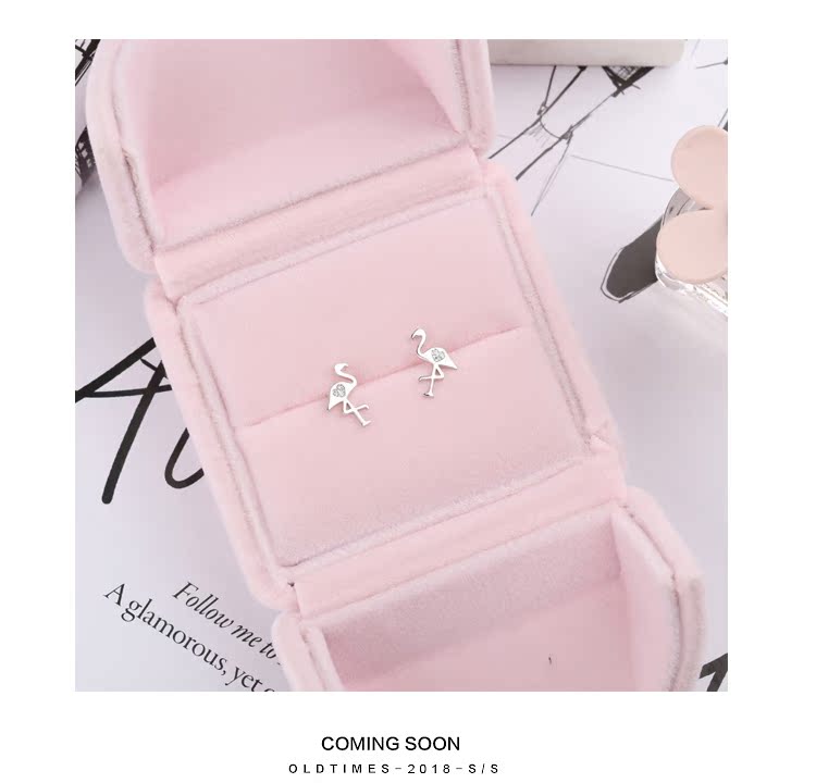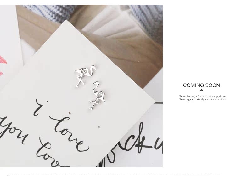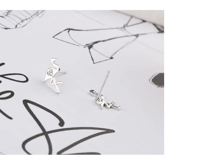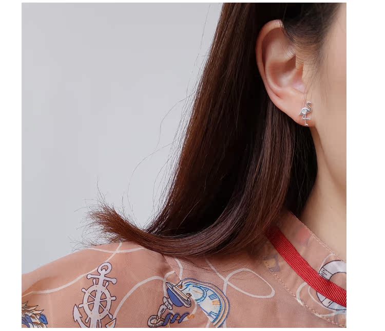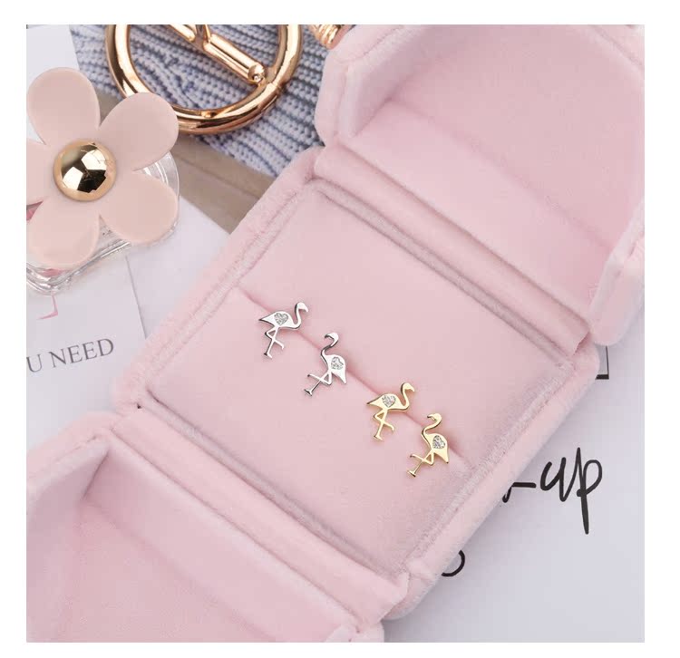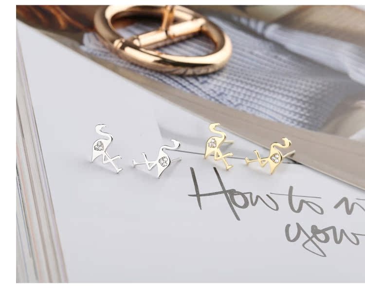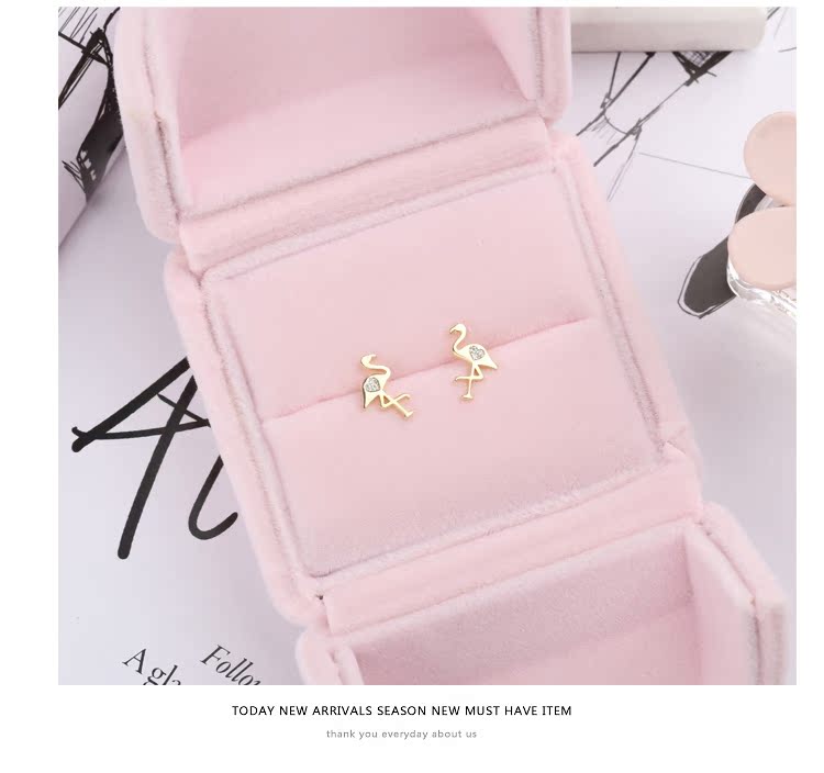 通體s925純銀迷你小火烈鳥耳釘女氣質日韓國簡約百搭耳環耳飾1入