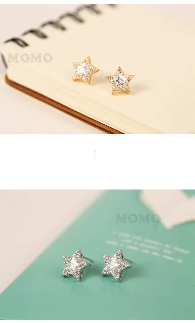 韓國S925純銀耳釘耳飾耳環五角星星簡約時尚百搭女款防過敏1入