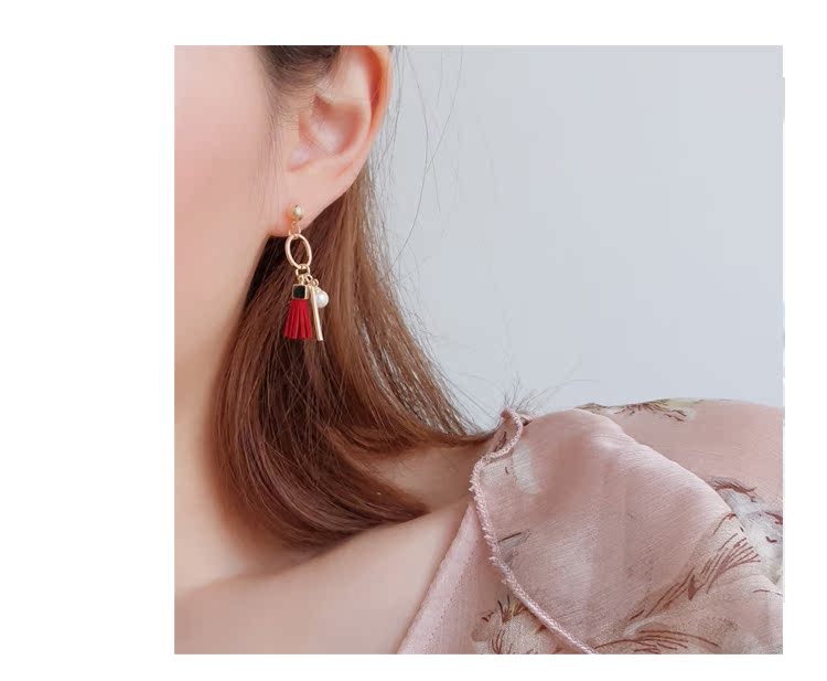 韓國耳環鏤空圓形珍珠流蘇吊墜設計銀針耳釘女甜美復古麂皮別致1入