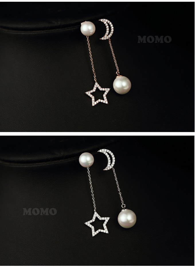 不對稱設計,一邊的珍珠還是前后帶款,一邊是珍珠掛墜,好有味道的
