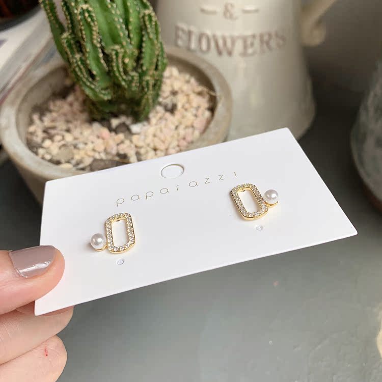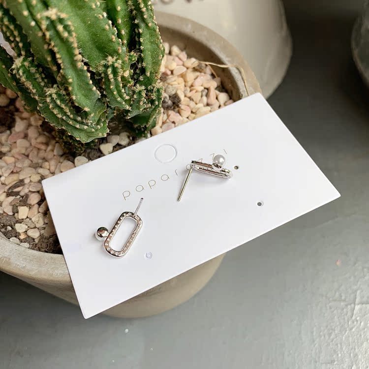 韓國氣質珍珠耳環時尚鑲鉆橢圓925銀針耳釘簡約百搭高級感耳飾品1入