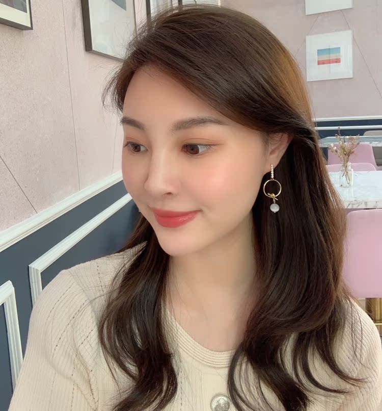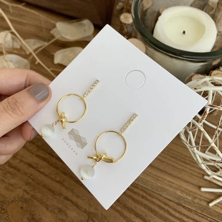 韓國東大門簡約氣質高冷貓眼石吊墜質感時尚耳環925銀針耳釘1入