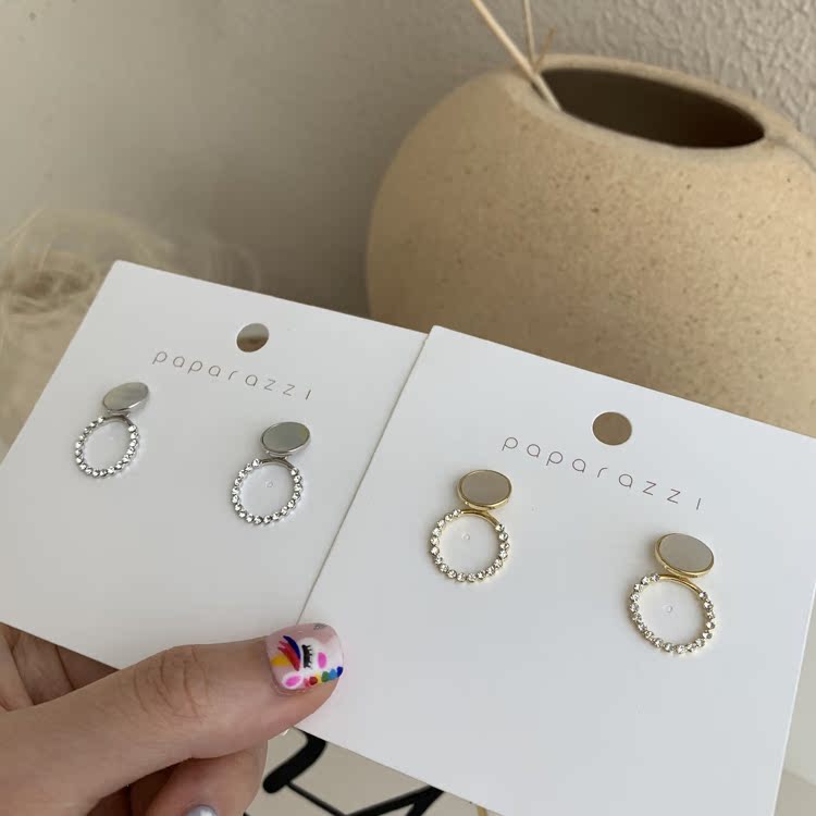 韓國東大門天然貝殼 鑲鉆鏤空圓圈環耳墜耳飾清新925銀針耳釘耳環1入