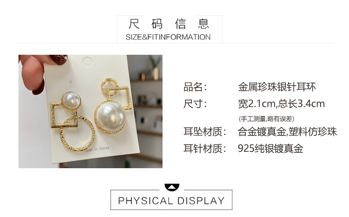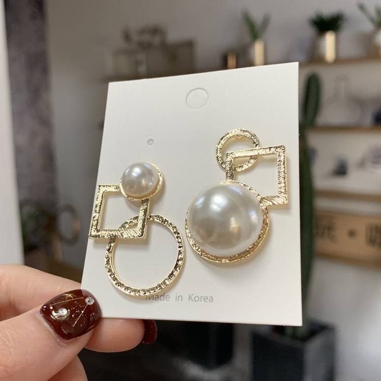 韓國設計感復古金屬珍珠別致不對稱耳環925銀針耳釘女氣質個性1入