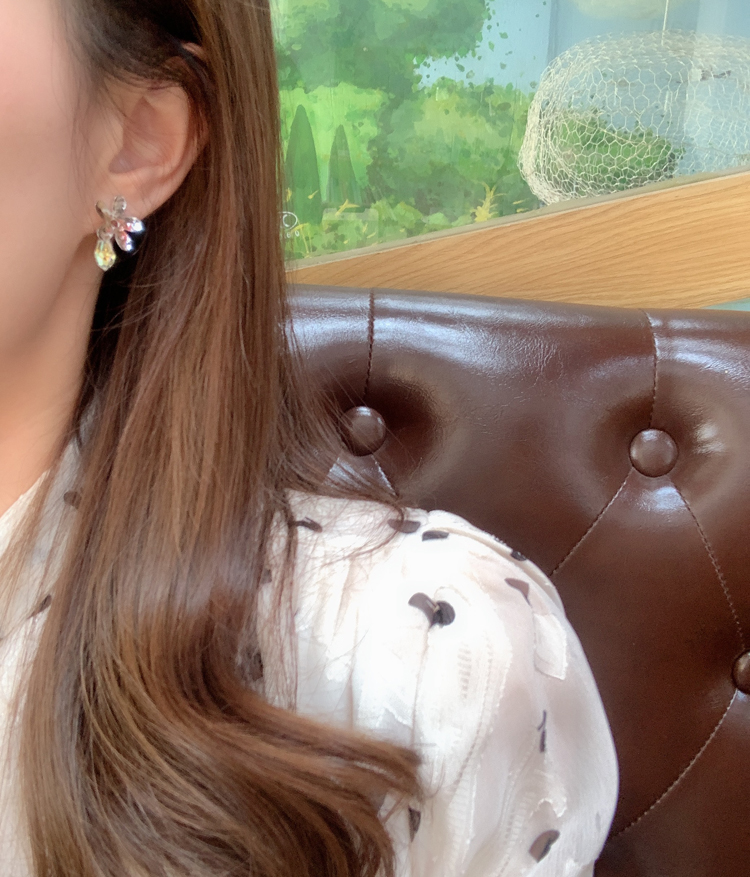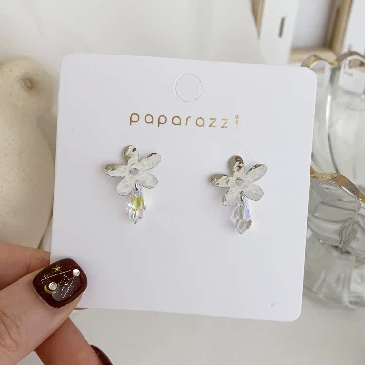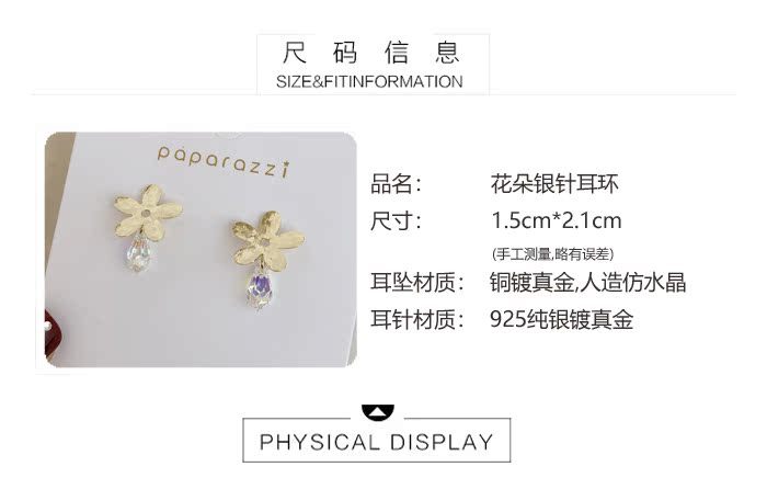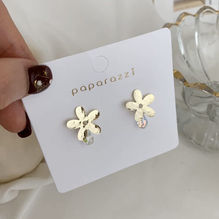 韓國東大門時髦個性波紋凹凸亮面圓片金屬水晶吊墜銀針耳環女耳釘1入