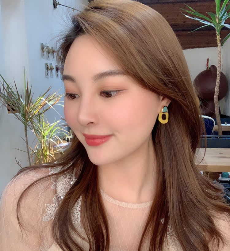 韓國東大門撞色簡約氣質彩色不對稱耳環女925銀針耳釘優雅大方1入