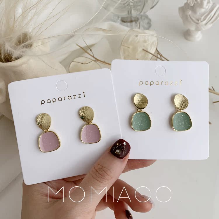 韓國東大門夏季甜美彩色金屬耳環925銀針耳釘女閃亮耳飾氣質簡約1入