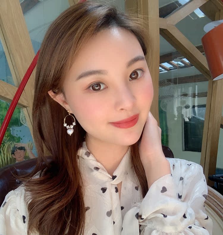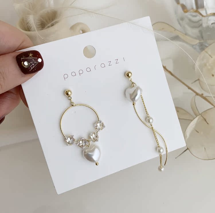 韓國新款耳環 甜美風優雅愛心珍珠不對稱925銀針耳釘顯臉瘦顯氣質1入
