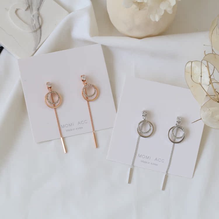 韓國精致淑女溫婉氣質超美前后925銀針耳釘前后流蘇長墜耳環簡約1入