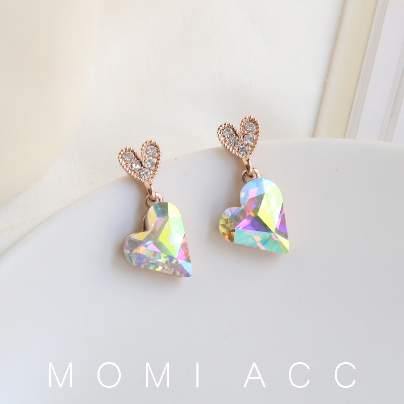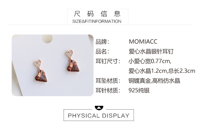 韓國新品 925銀針耳釘東大門甜美少女氣質百搭愛心耳環水晶墜簡約1入