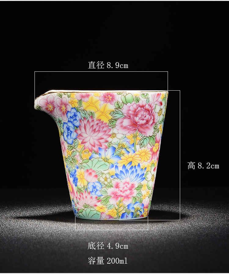 陶生活 琺瑯彩公道杯 陶瓷功夫茶具 零配分茶器茶海 萬花公杯1入