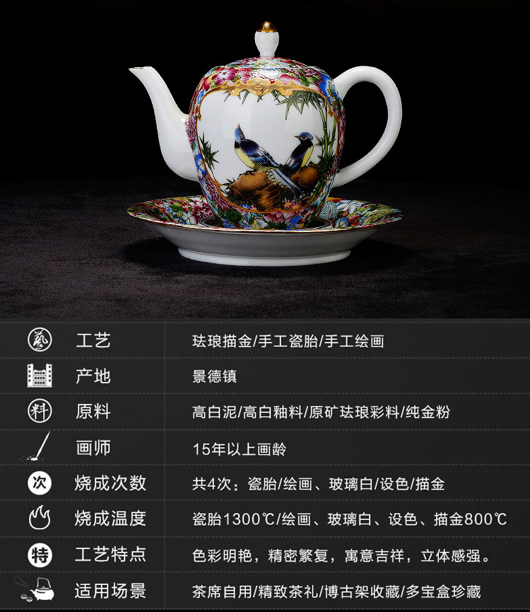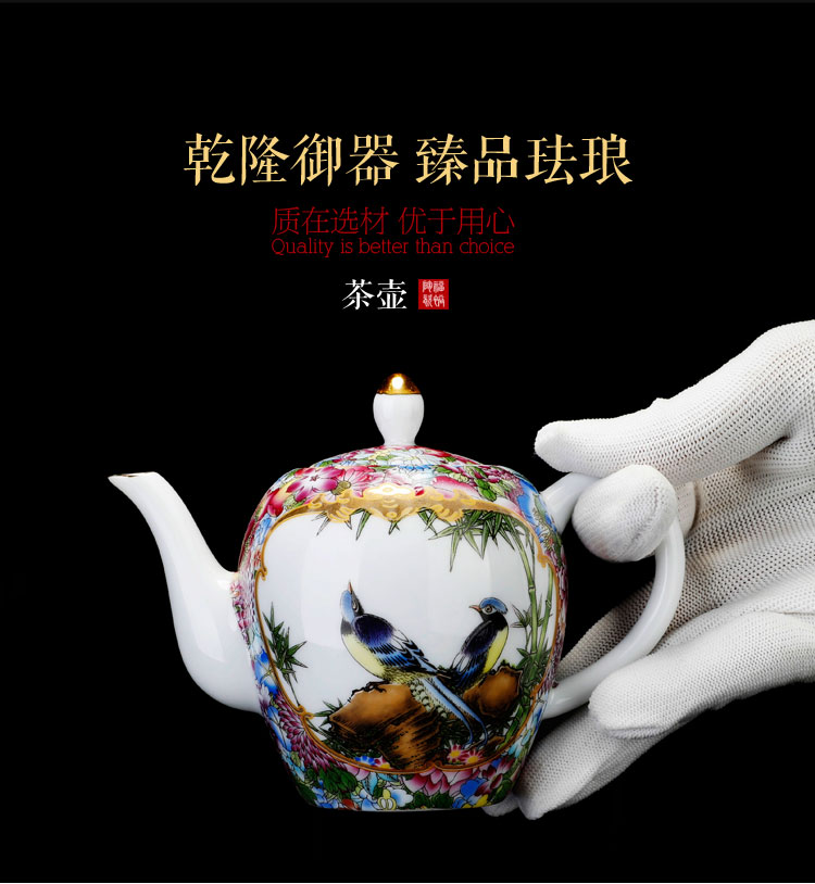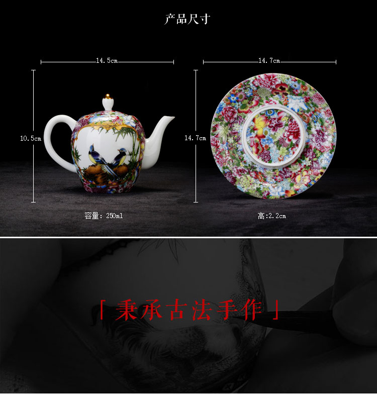 陶生活 景德鎮陶瓷茶壺 手工手繪粉彩金地萬花壺 功夫茶具 泡茶壺1入