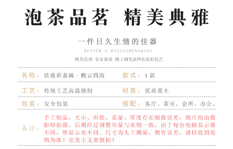 陶生活 陶瓷蓋碗茶杯青花瓷茶碗 琺瑯彩三才碗家用三才杯功夫茶具1入