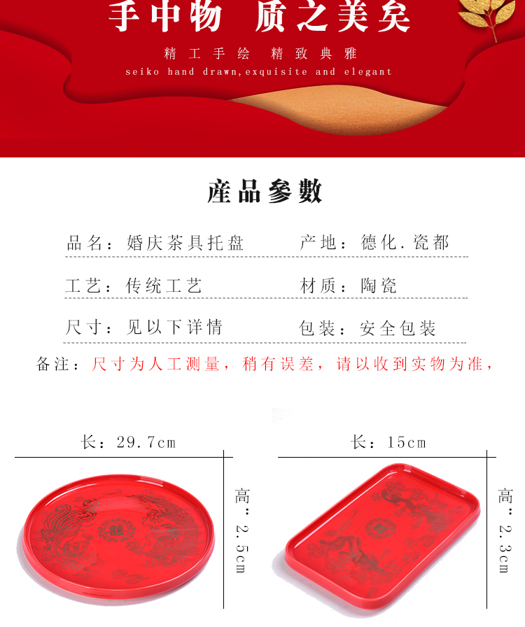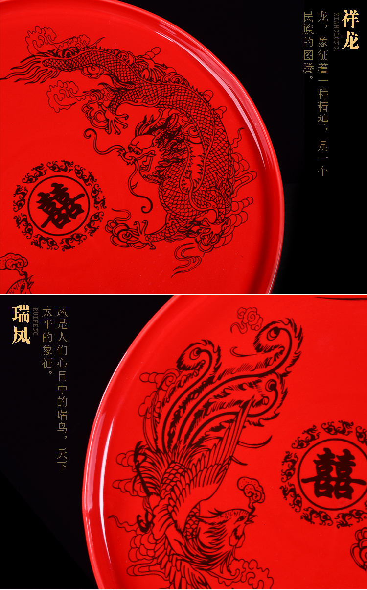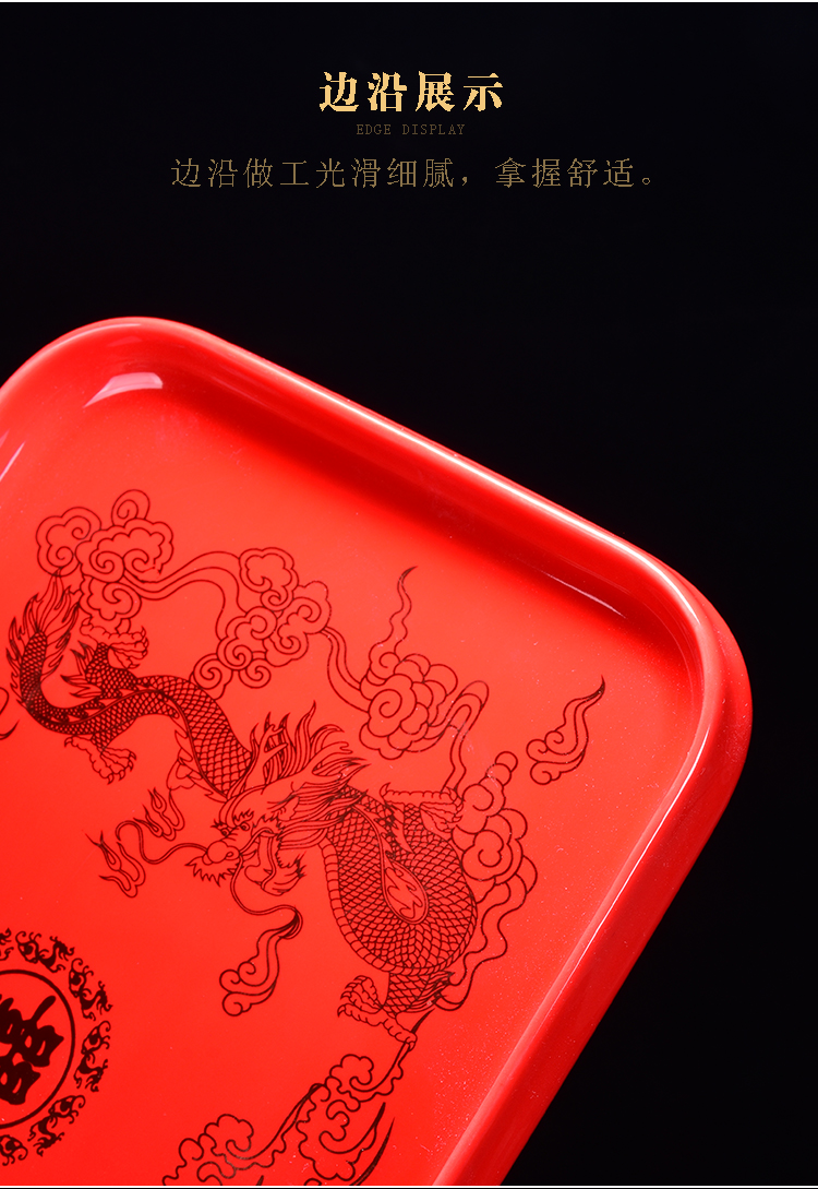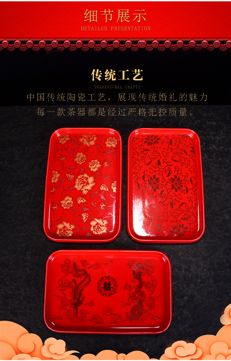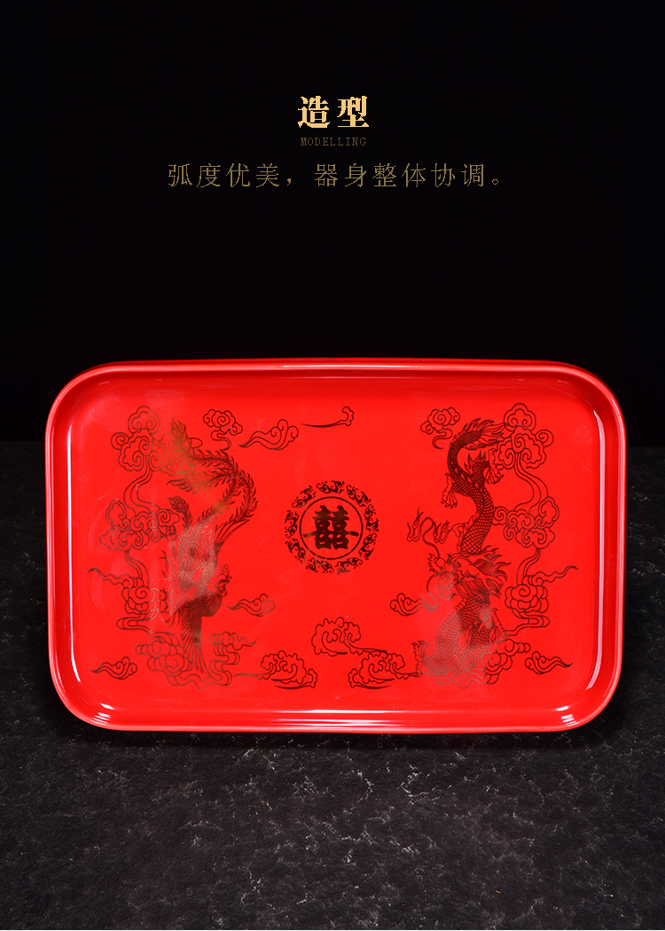 陶瓷婚慶禮品結婚陶瓷紅釉茶盤喜慶托盤紅釉長方形敬茶干泡盤茶奉1入
