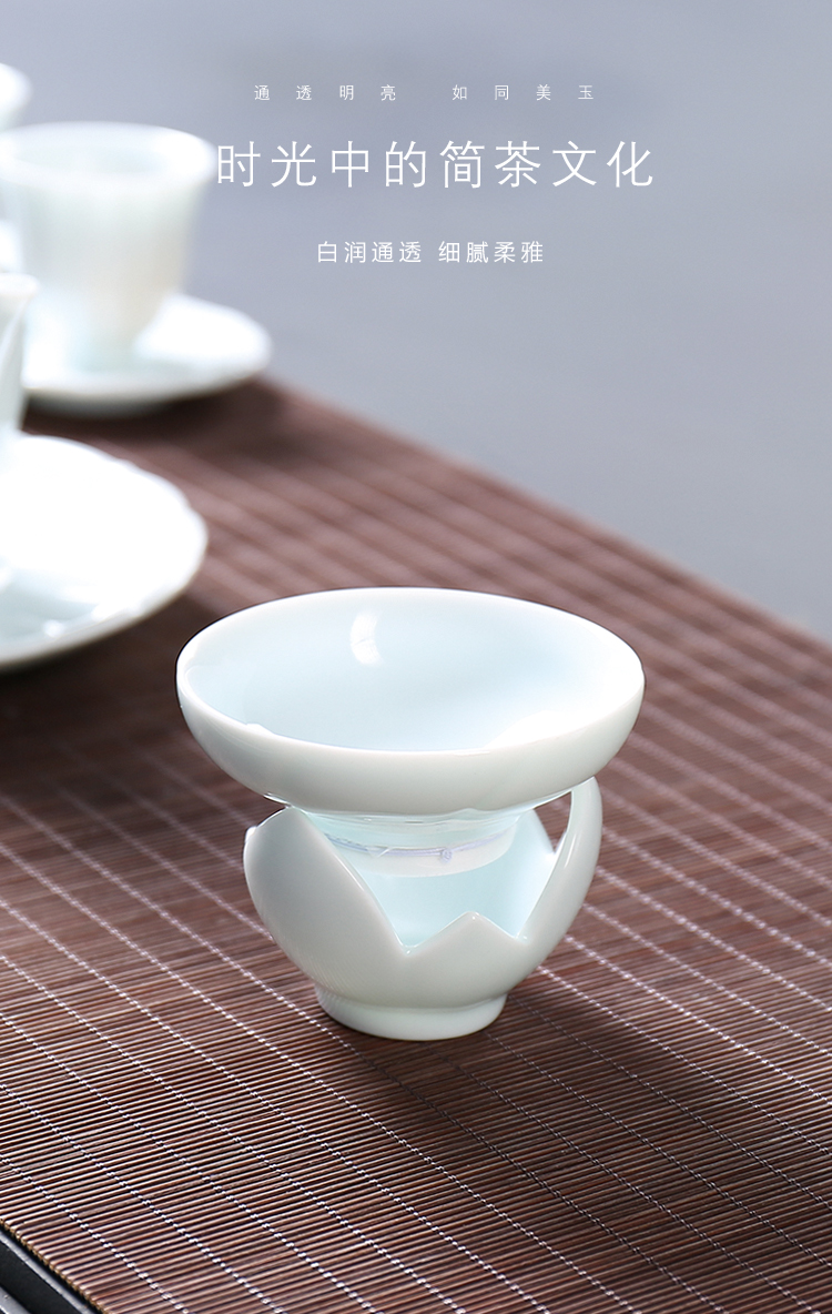 陶生活 影青白瓷茶漏茶濾陶瓷功夫茶具漏網 泡茶濾茶器茶葉過濾網1入
