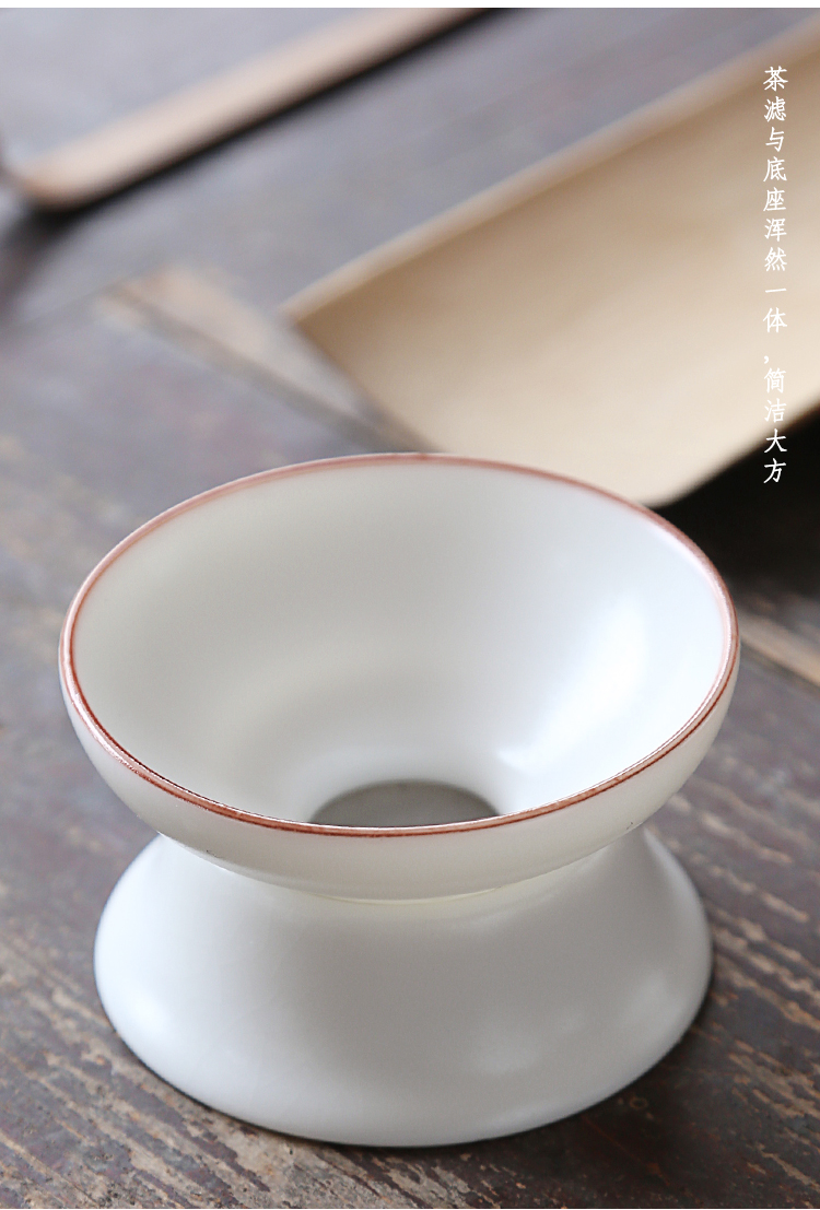 象牙白汝窯茶漏創意過濾網茶器茶濾茶托功夫茶具配件茶道日式茶隔1入