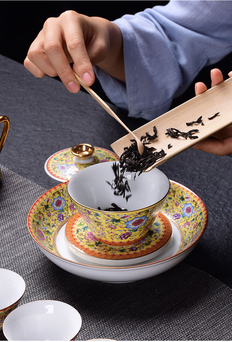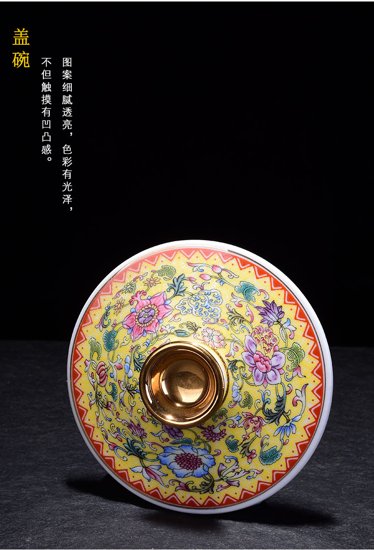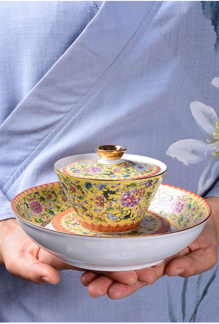 陶生活琺瑯彩蓋碗功夫茶具陶瓷茶碗三才壺承白瓷大號茶托杯子套裝1入