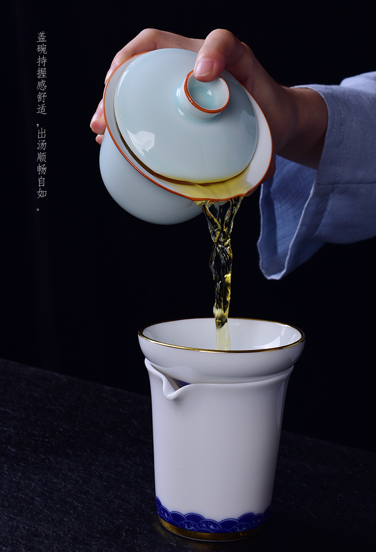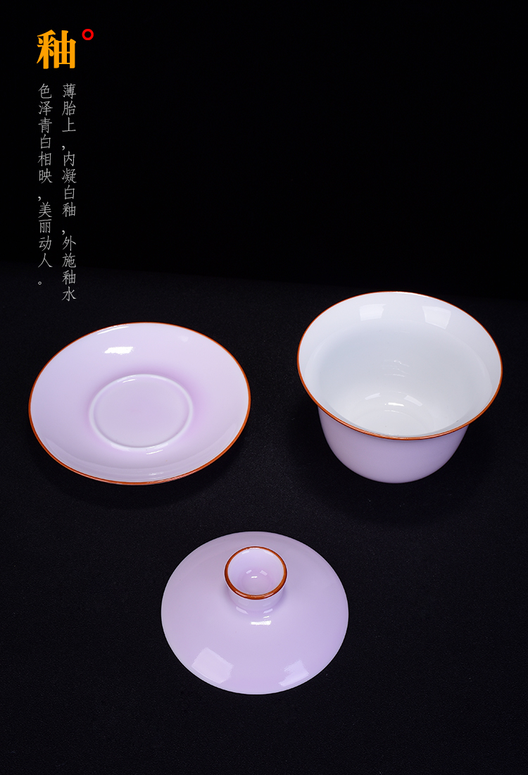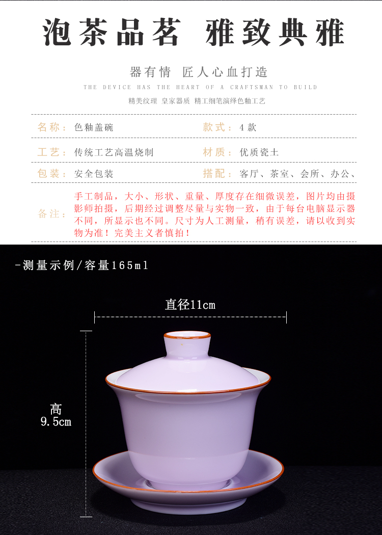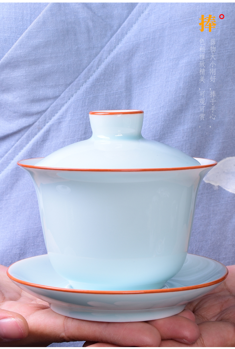 霽藍霽青色釉蓋碗三才碗陶瓷蓋碗三才杯壺承敬茶碗泡茶杯功夫茶具1入