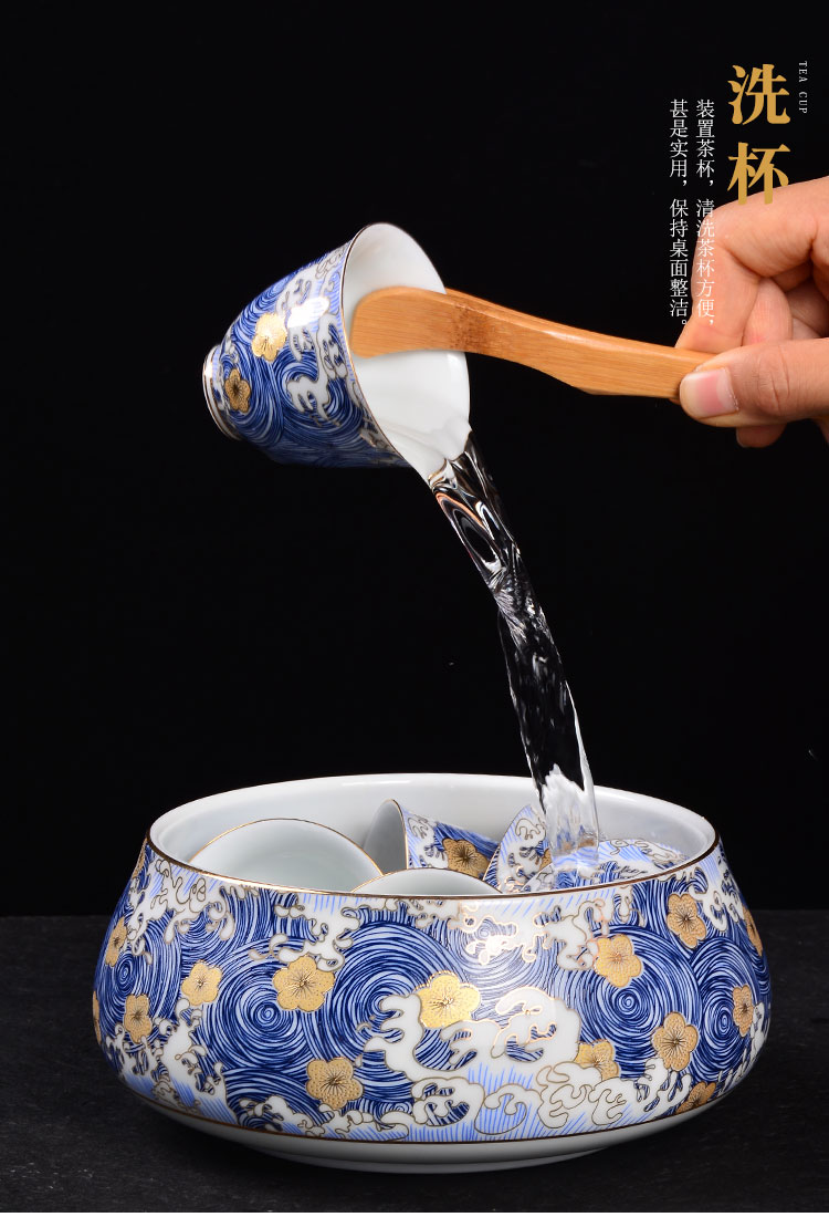 [2]大號茶洗家用筆洗青花陶瓷茶具配件洗杯碗茶道六君子零配水盂水洗1入