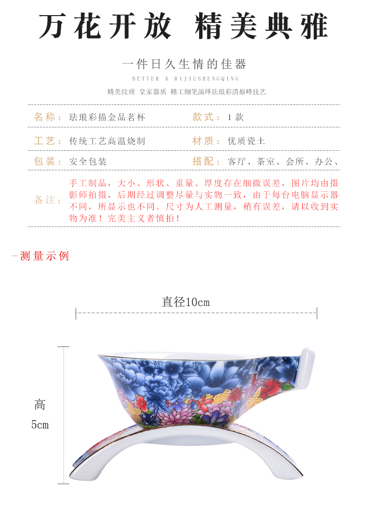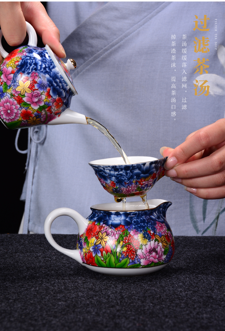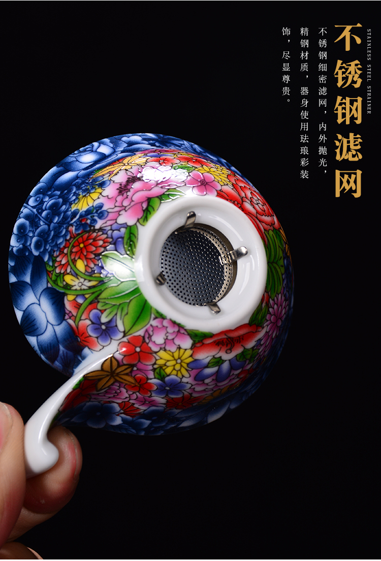 陶生活 景德鎮茶漏茶濾手繪粉彩功夫茶具配件 琺瑯彩茶葉過濾網架1入