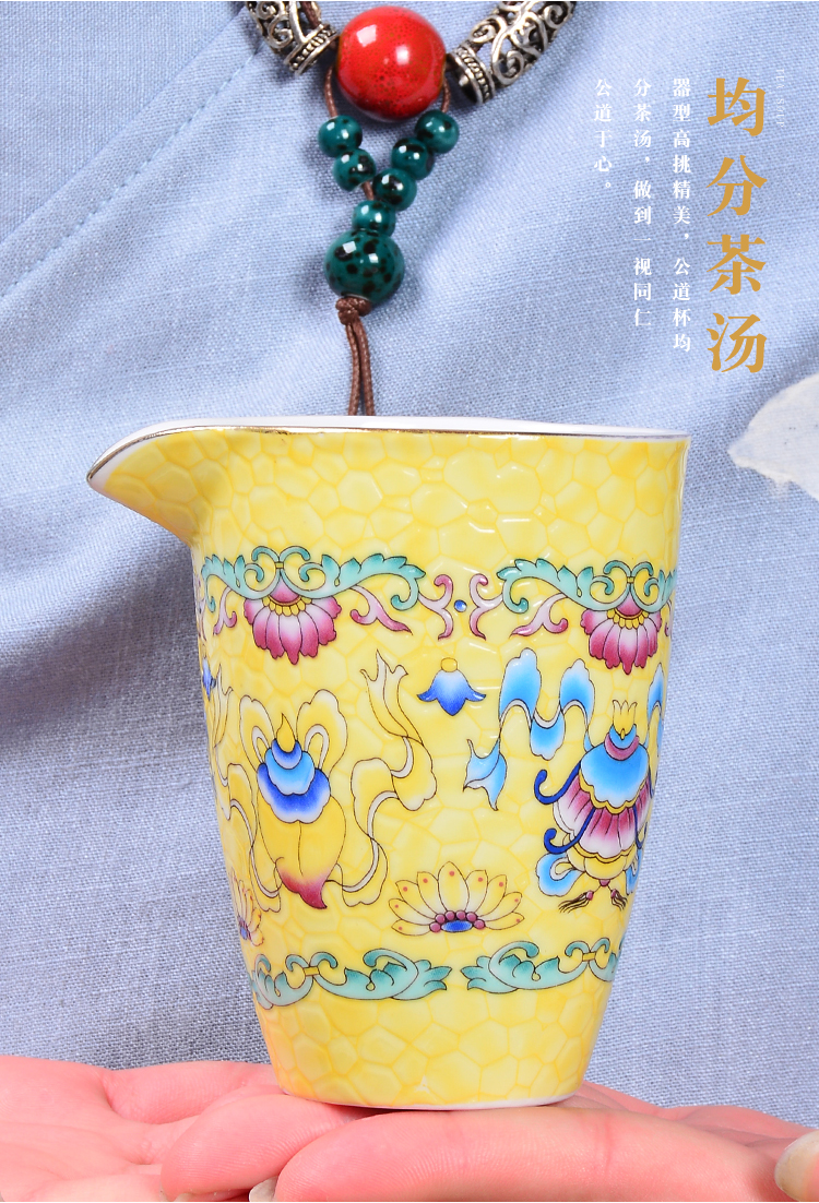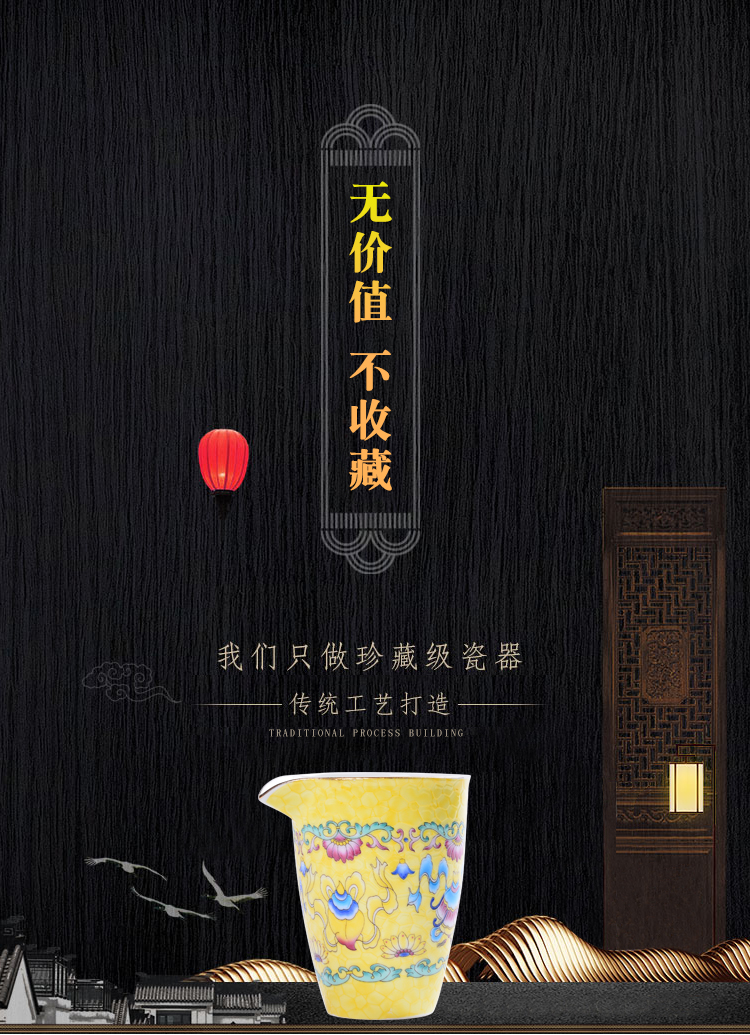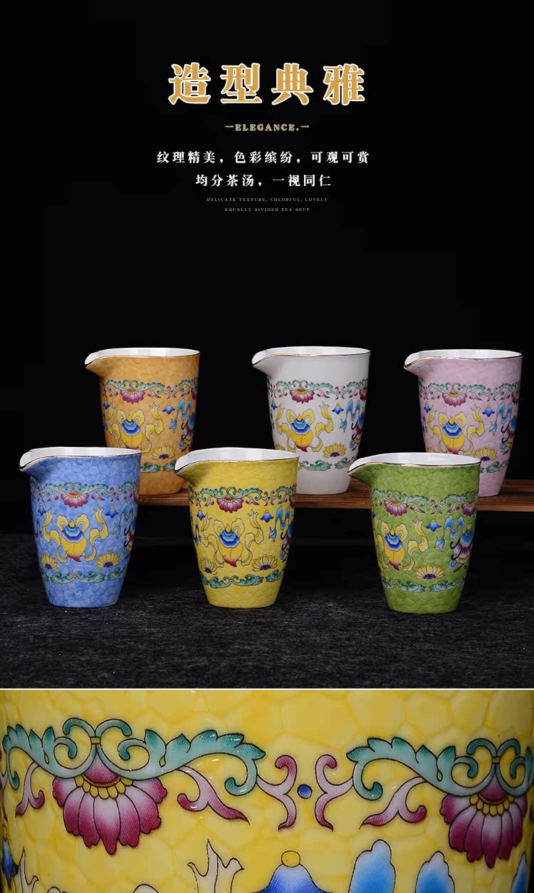 陶生活 景德鎮琺瑯彩吉祥三寶滿彩公道杯茶道零配分茶器滿花茶海1入