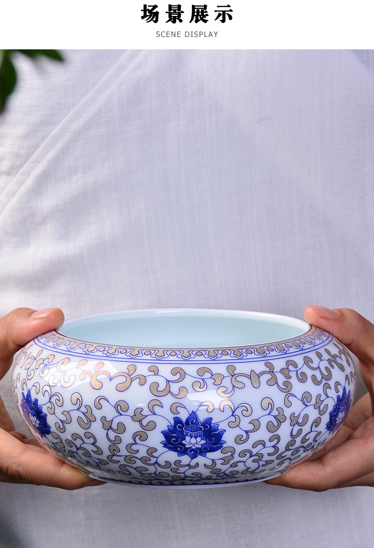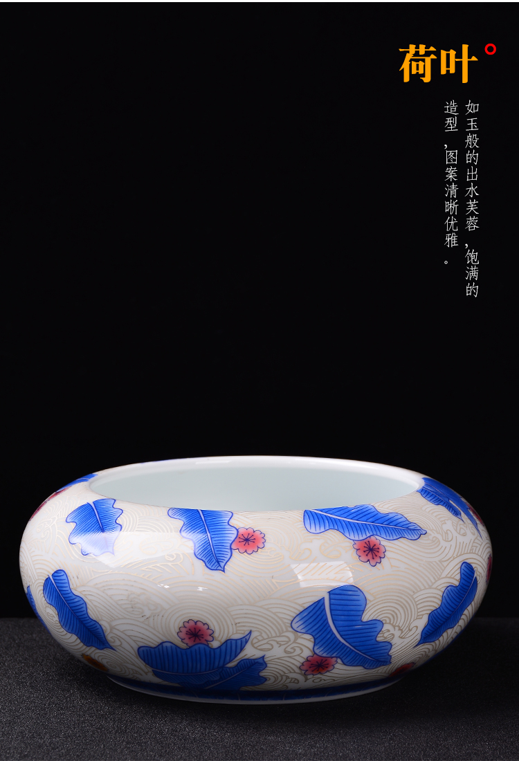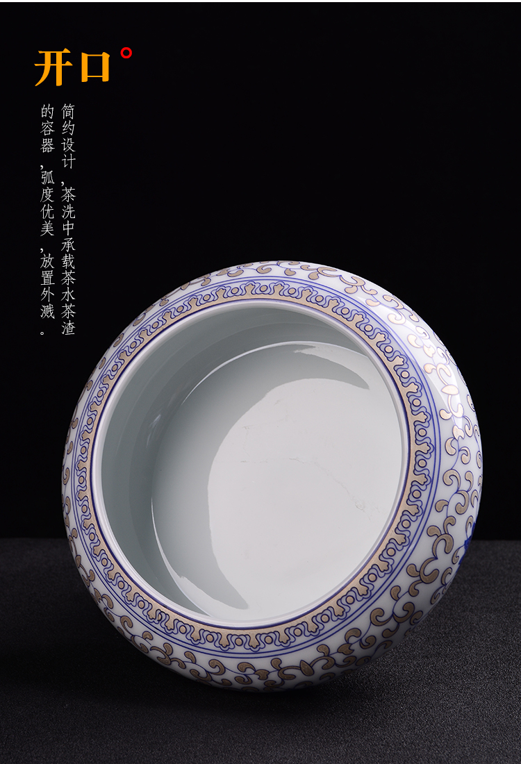 陶生活 手繪茶洗功夫茶具零配件杯洗景德鎮陶瓷茶洗大號 茶洗1入