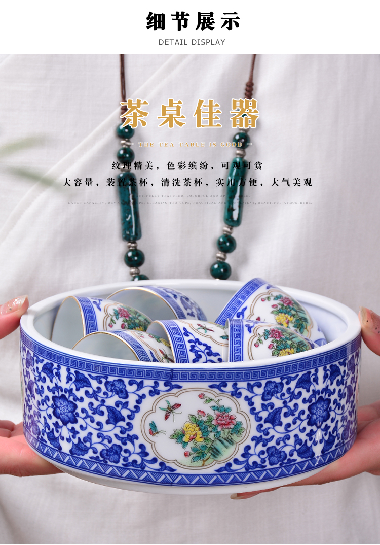 陶生活 大號茶洗 茶具筆洗青花陶瓷配件茶道六君子零配 水盂 水洗1入