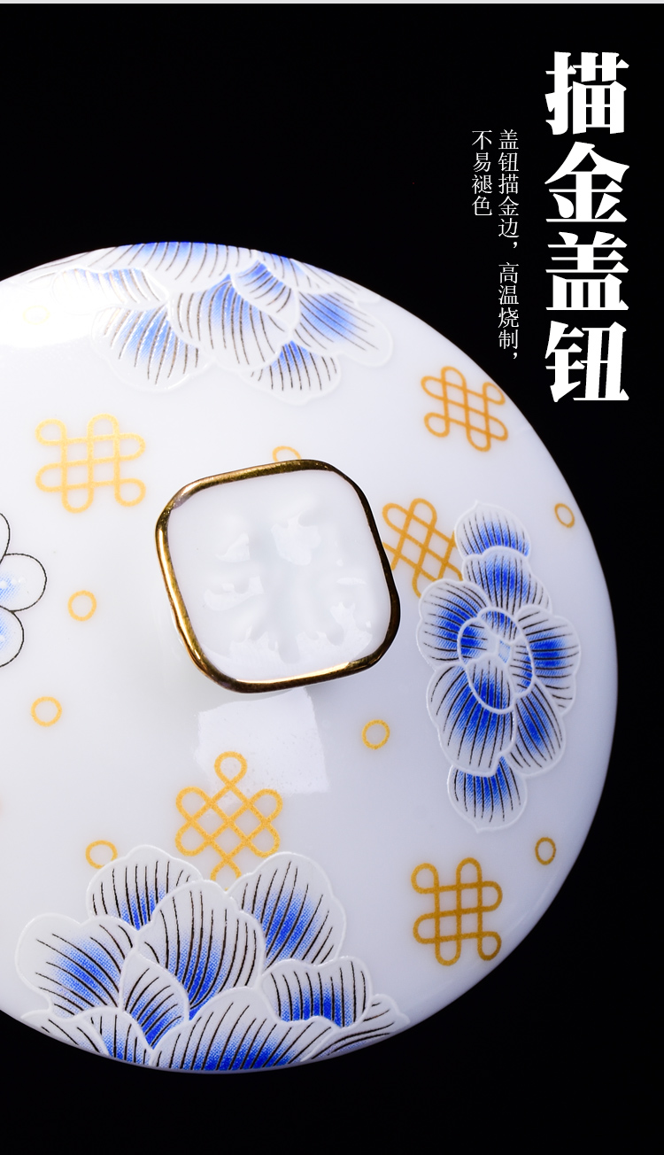 陶生活三才蓋碗茶杯手工家用功夫茶具泡茶碗大號白瓷蓋碗套裝單個1入