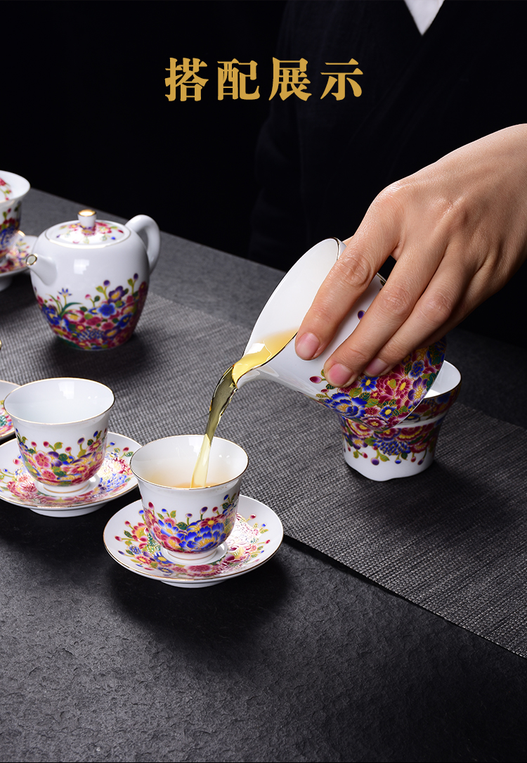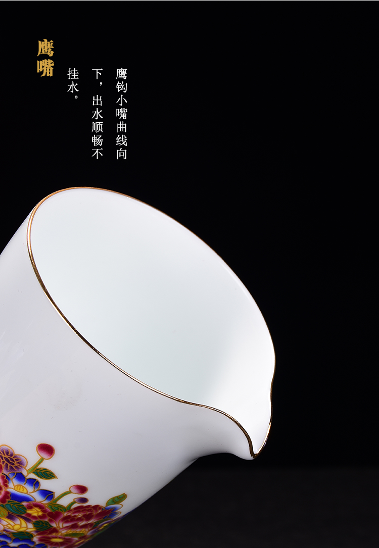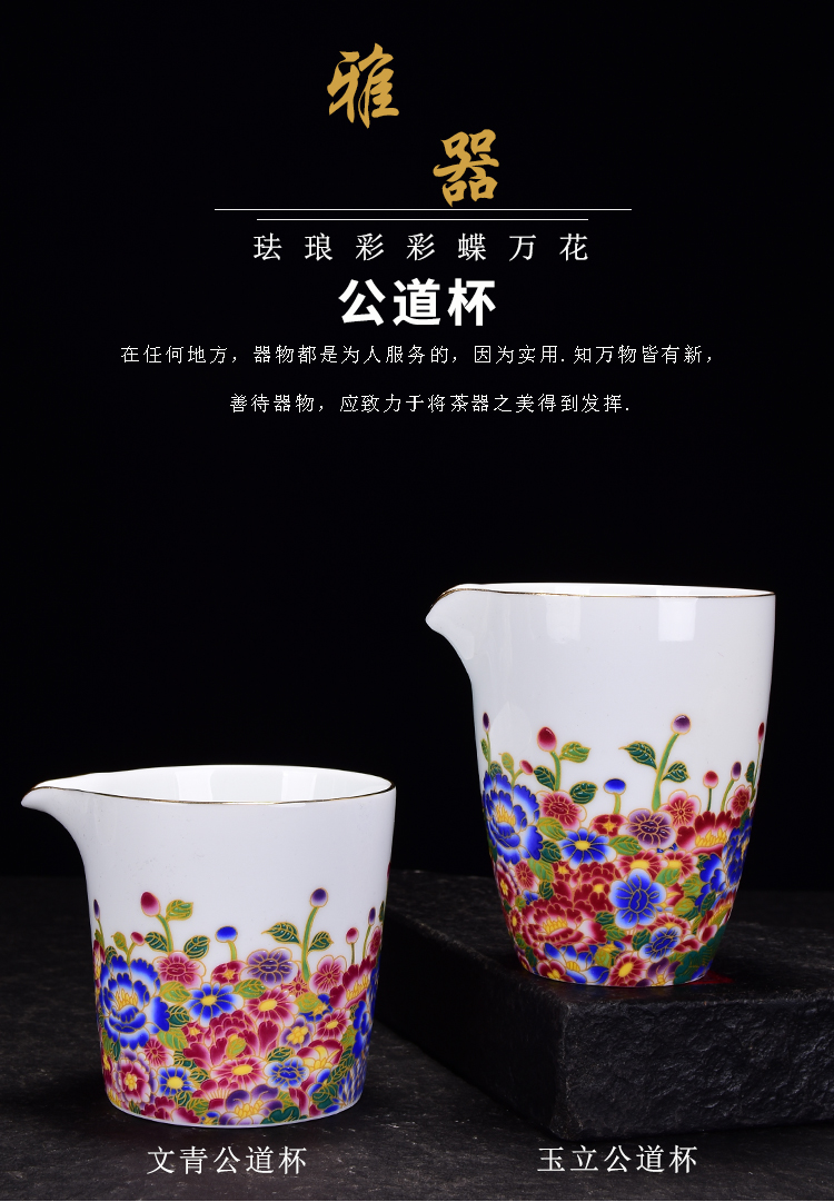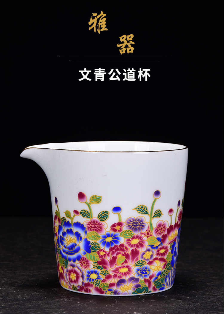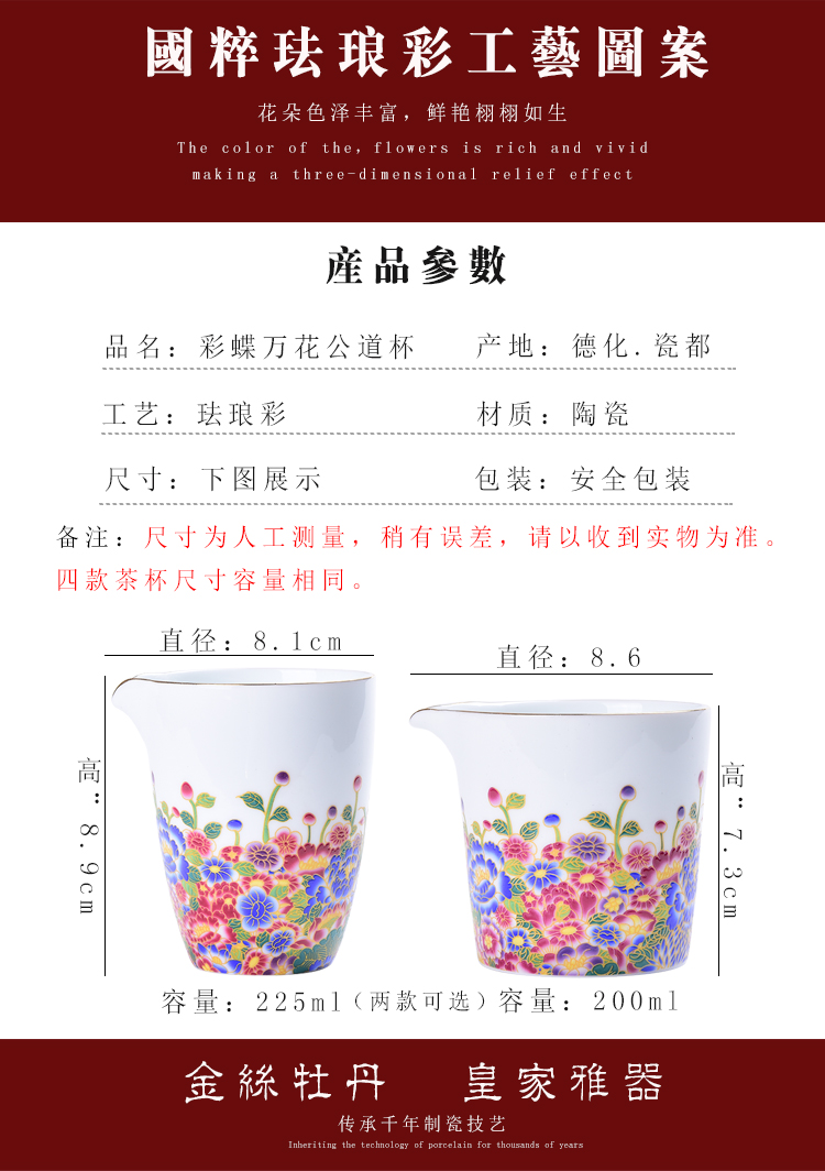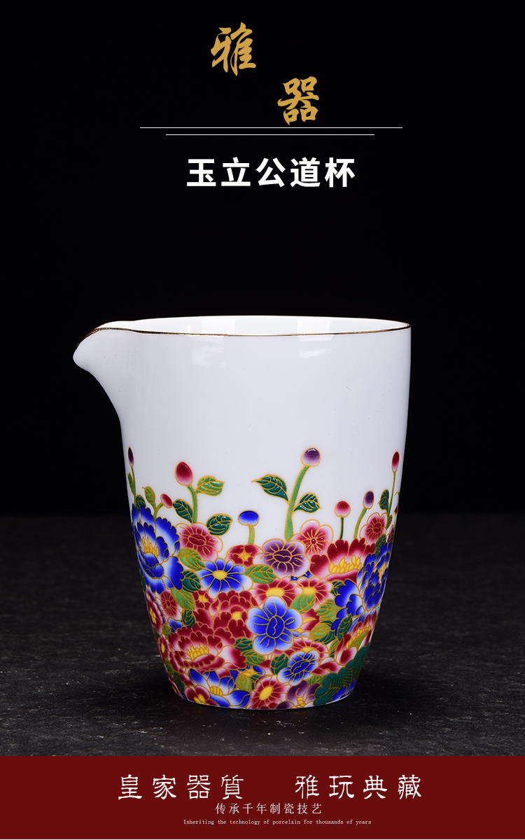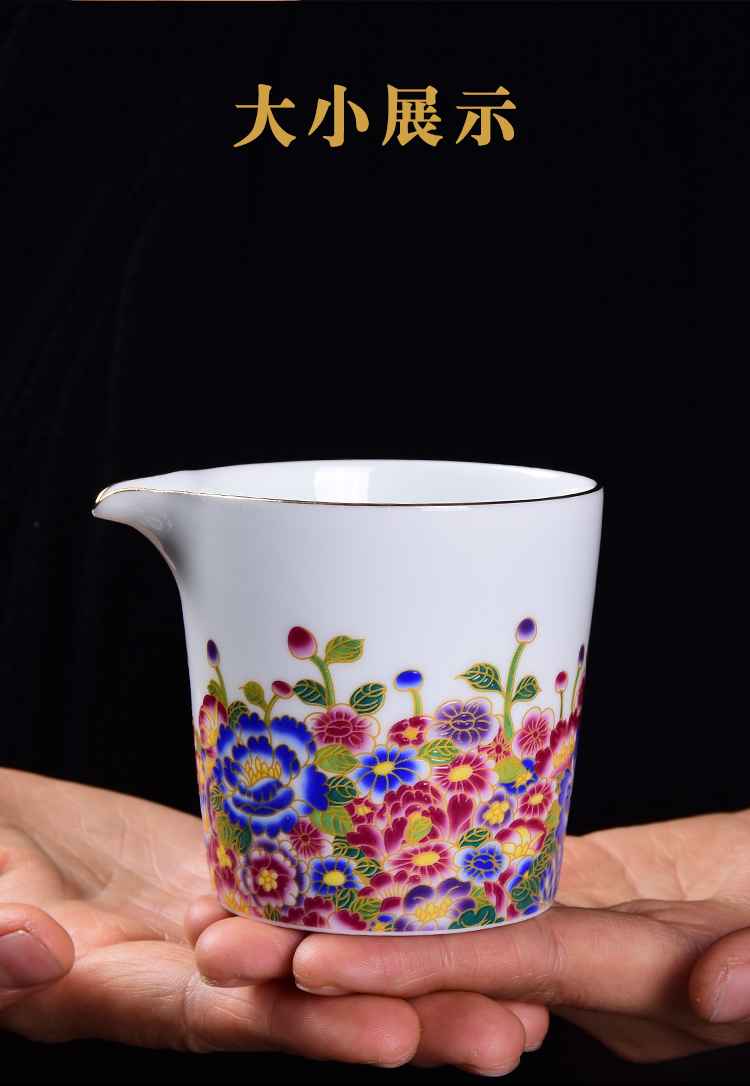 陶瓷琺瑯彩掐金絲公道杯功夫茶具茶海手抓分茶器萬花錦繡勻杯公杯1入