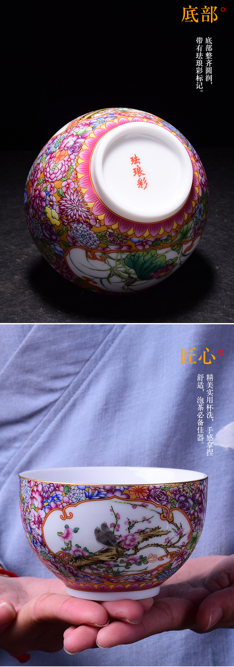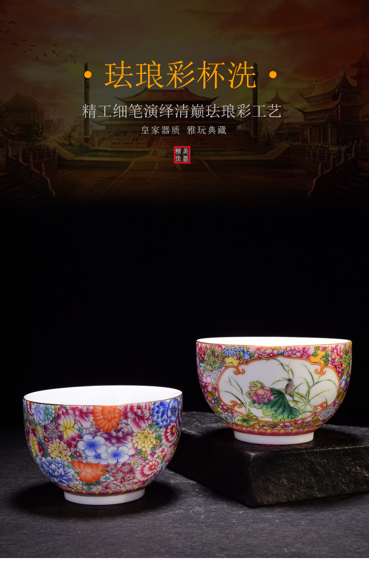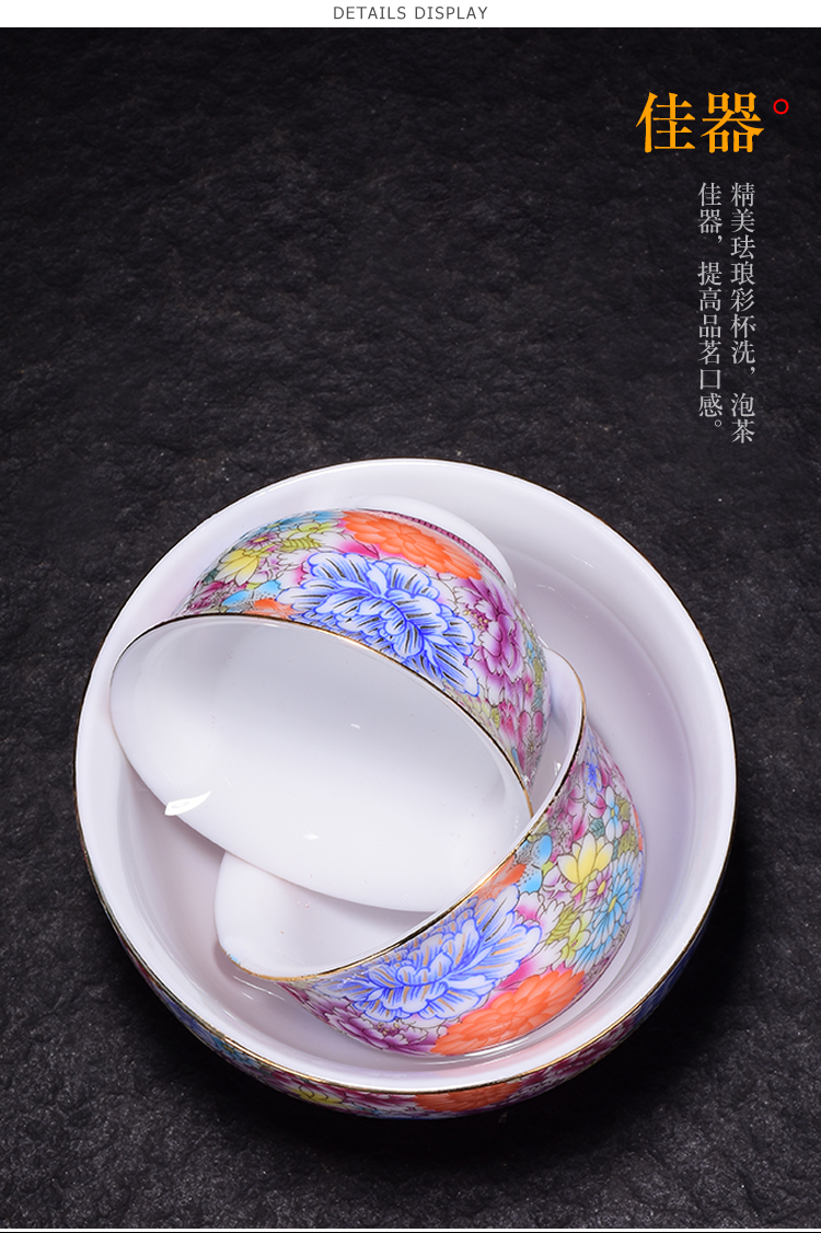 陶生活 茶道配件手工描金陶瓷水洗茶洗水盂渣斗杯洗大 琺瑯彩茶具1入