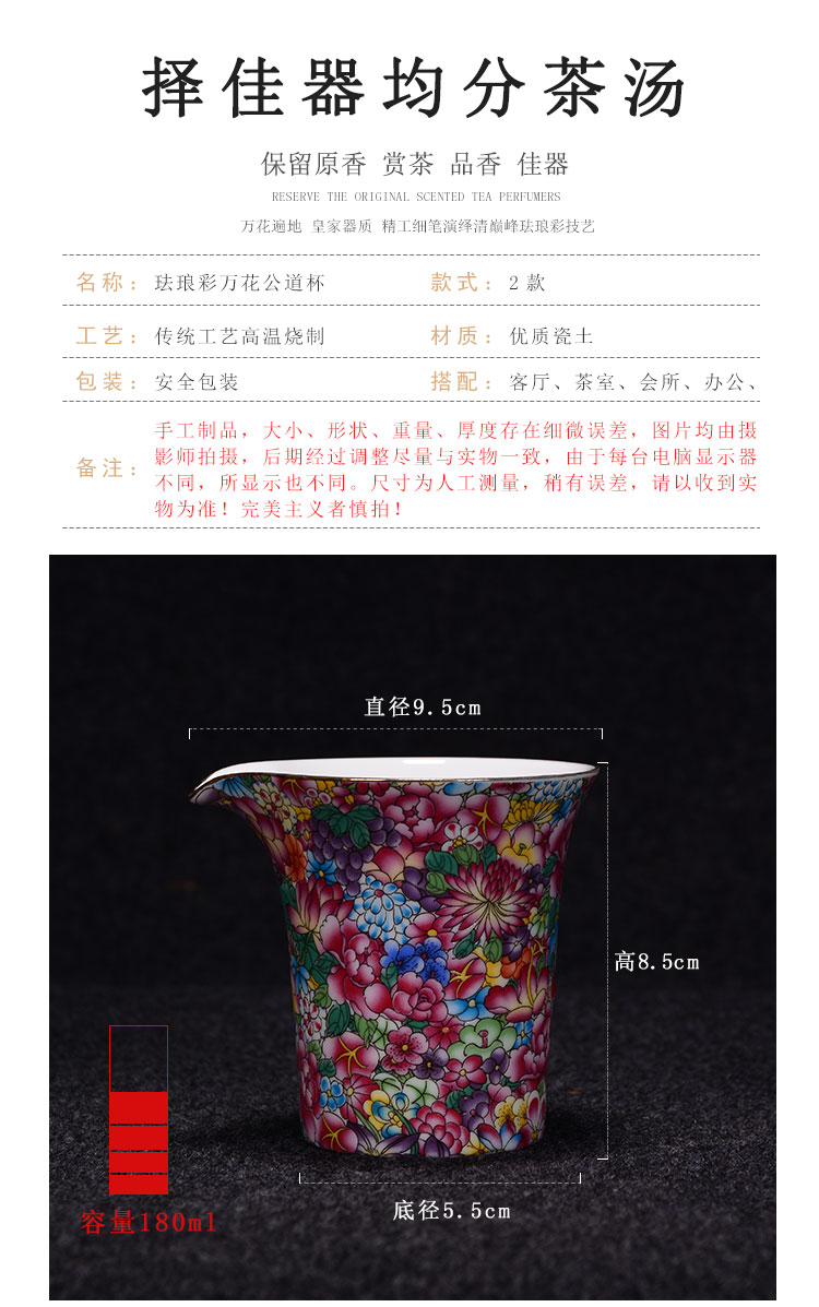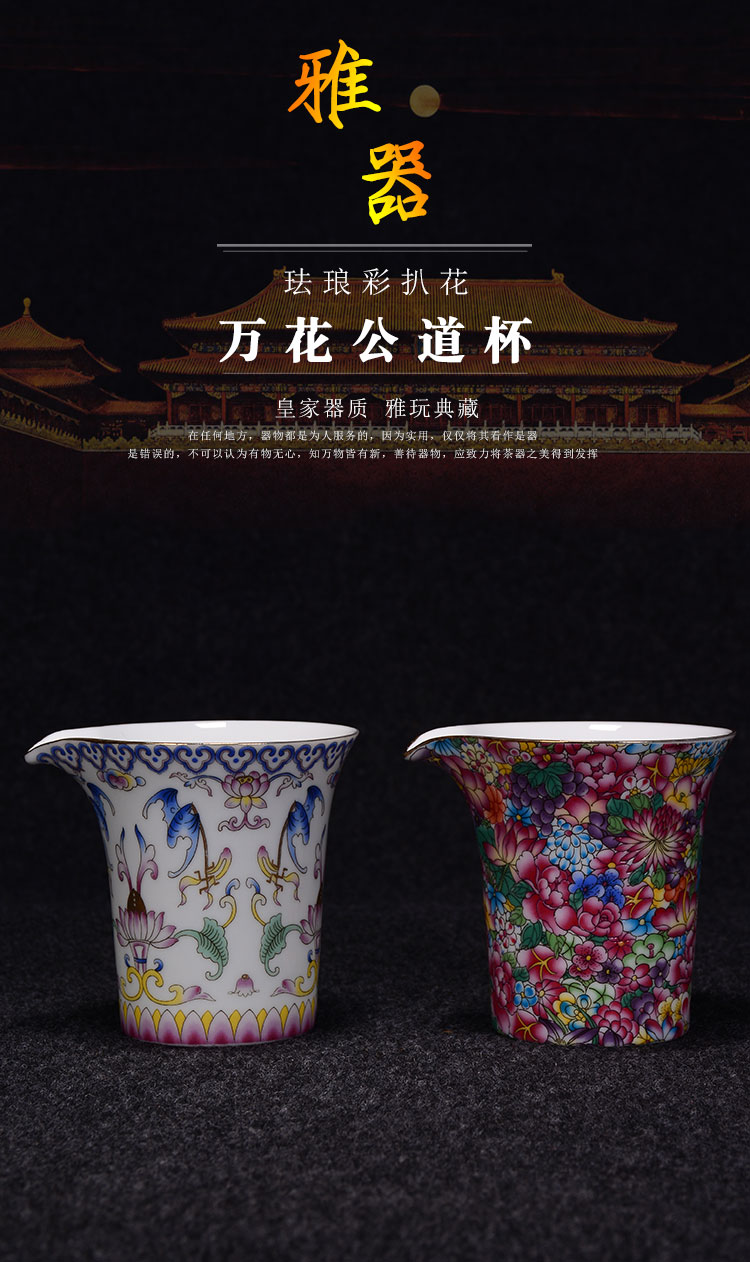 陶生活 粉彩金地萬花琺瑯彩公道杯 古韻分茶器 茶海 陶瓷功夫茶具1入