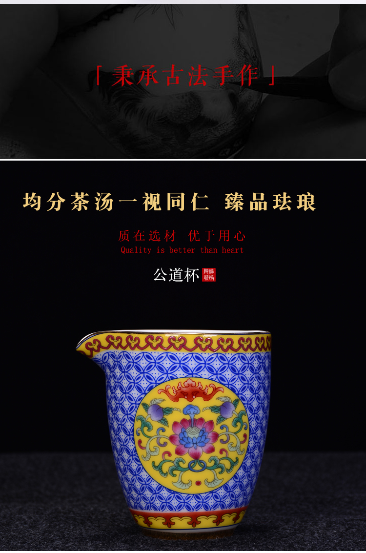陶生活琺瑯彩公道杯茶漏套裝均杯公道茶杯陶瓷功夫茶具配件分茶器1入