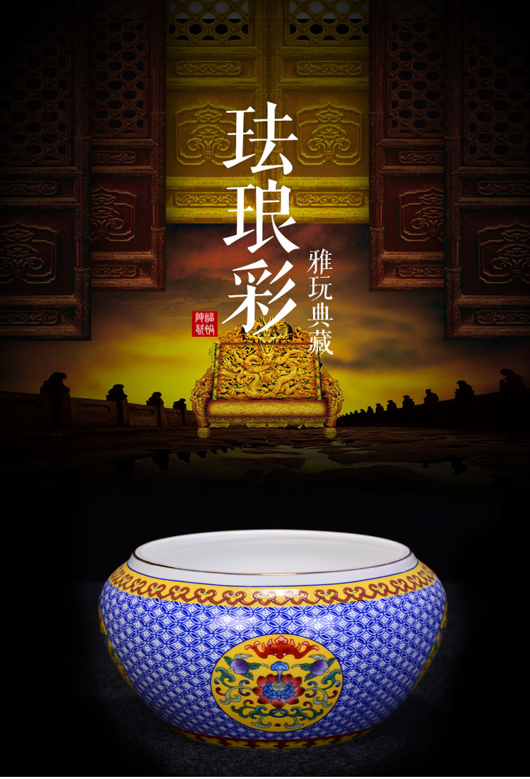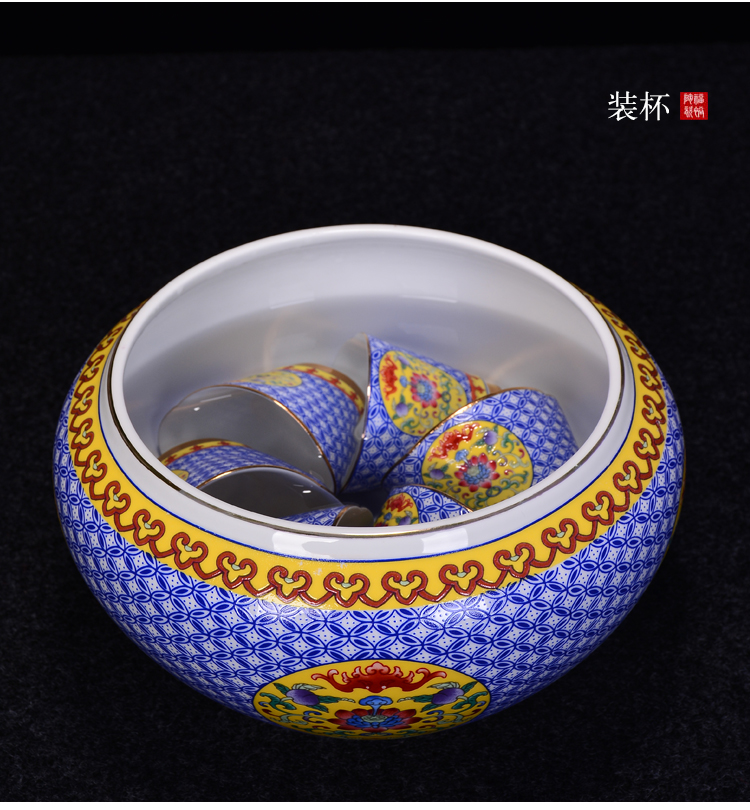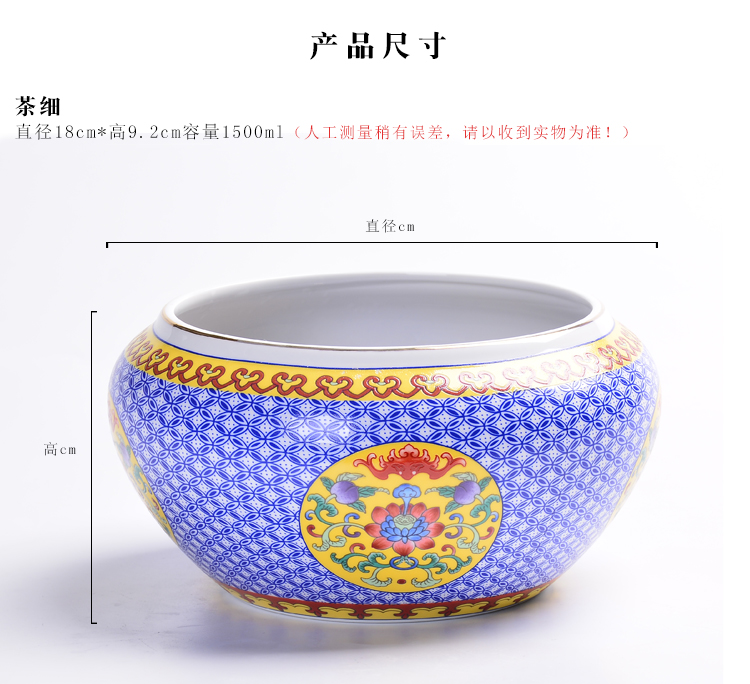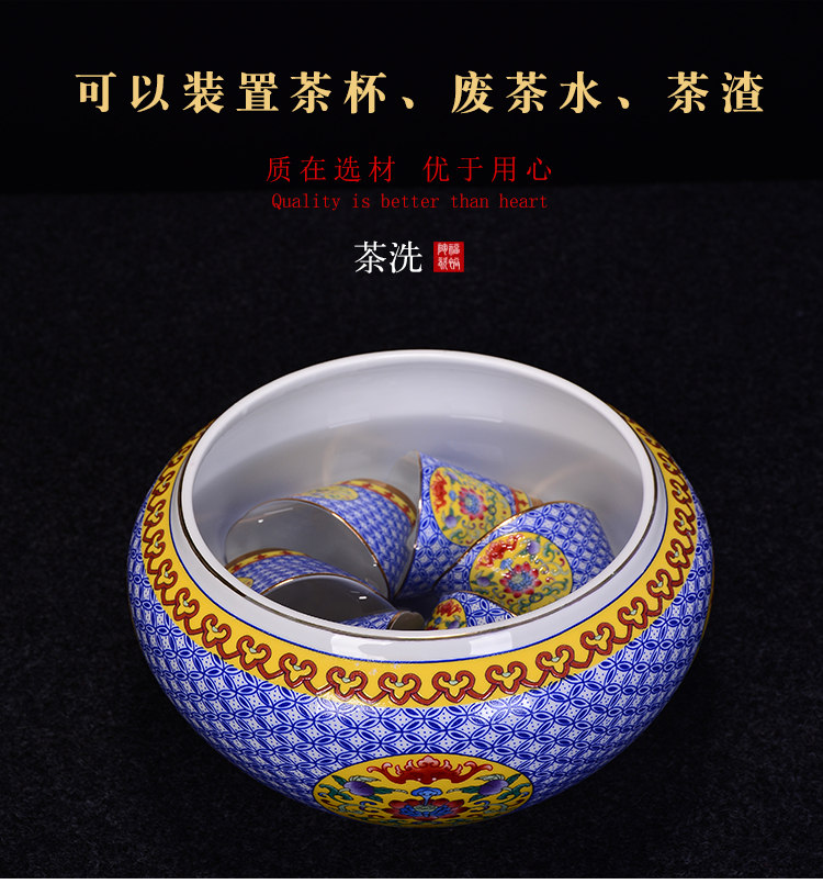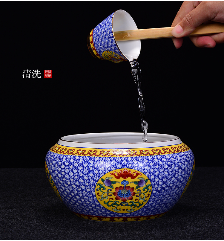 陶生活 琺瑯彩大號茶洗 茶道配件零配杯洗陶瓷水洗碗筆洗功夫茶具1入