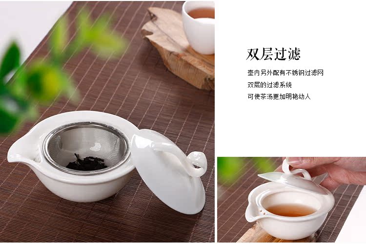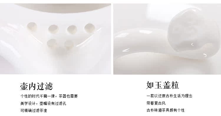 陶生活 一壺兩杯 白瓷茶具甜白玉瓷高檔創意手工家用功夫泡茶茶具1入
