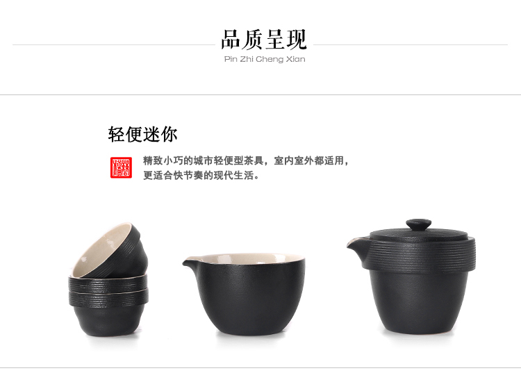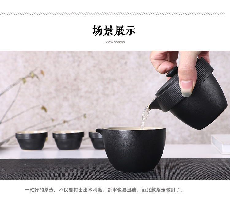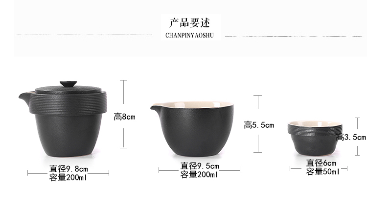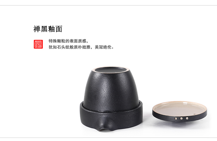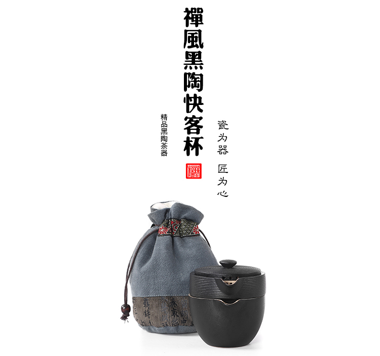 陶生活 黑禪風黑陶云螺快客杯 功夫茶具茶壺一壺兩杯旅行茶具套裝1入