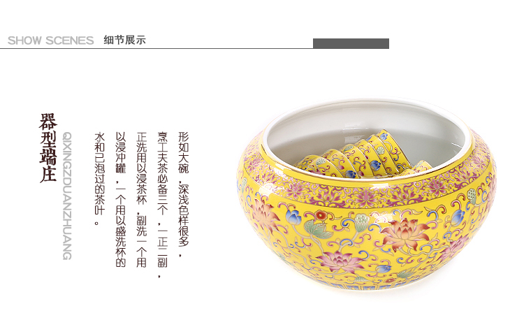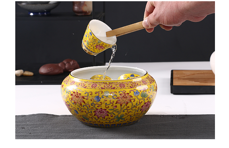 陶生活琺瑯彩陶瓷大號茶洗陶瓷水洗碗手繪杯筆洗功夫茶具茶道配件1入